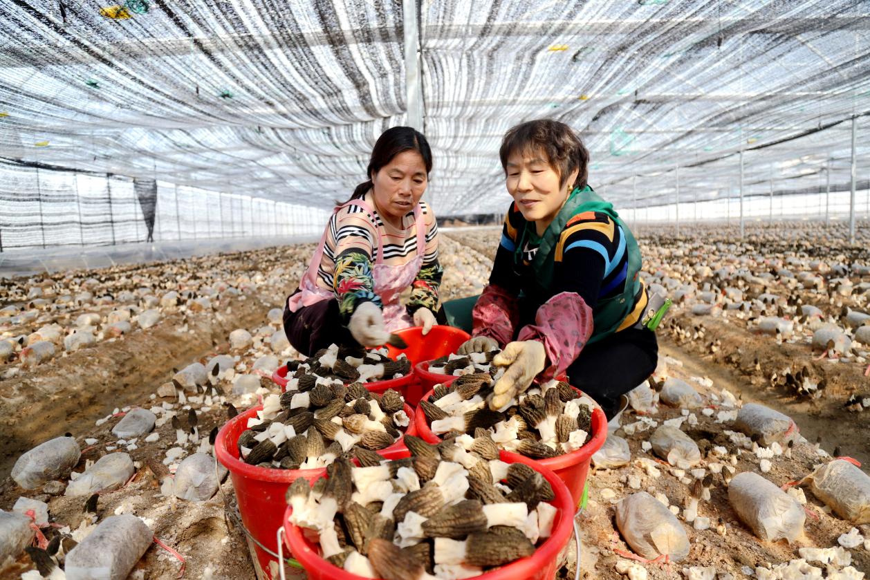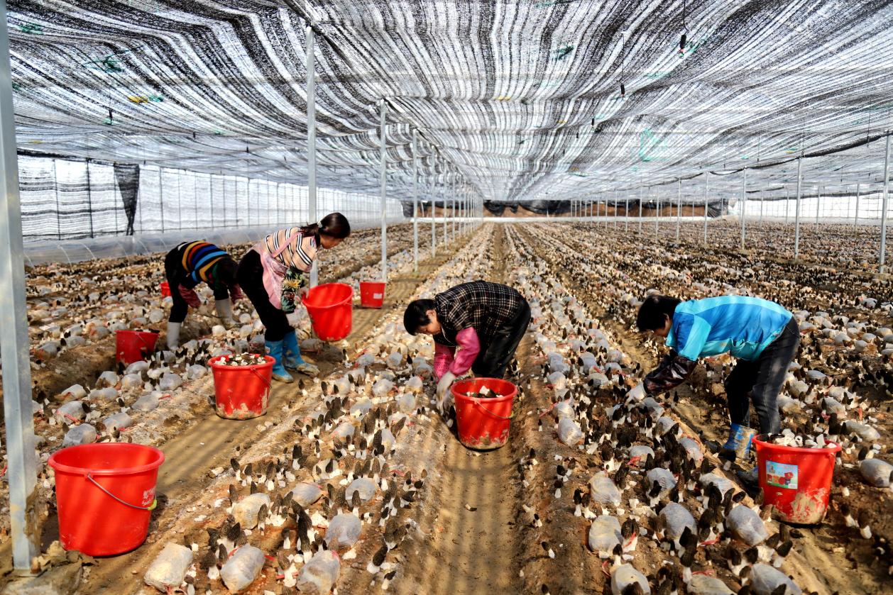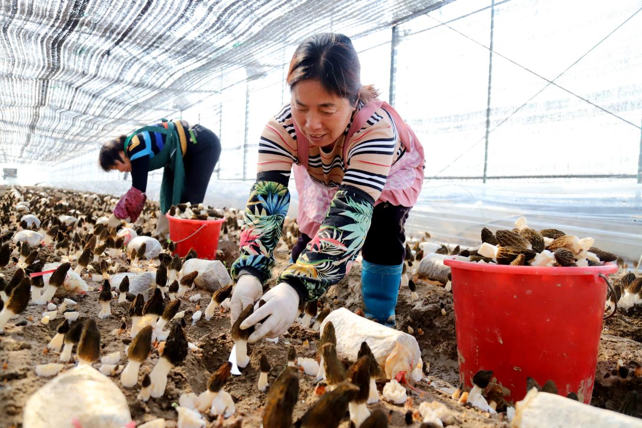 3月20日,记者看到,在整齐排列的大棚里,一颗颗羊肚菌破土而出,乳白色的菌柄撑起蜂窝状的菌盖,好似一把把“小伞”。村民们穿梭其中,采摘、装筐、运送……一名工人拿着小刀小心地采摘着新鲜出土的羊肚菌。这位工人表示,“在采摘时,一定要注意脚下不要踩到刚长出来的羊肚菌……”被誉为“菌中之王”的羊肚菌,不仅营养丰富,还具有较高的食用价值和医用价值,所以销售不愁,市场价格行情也十分可观。