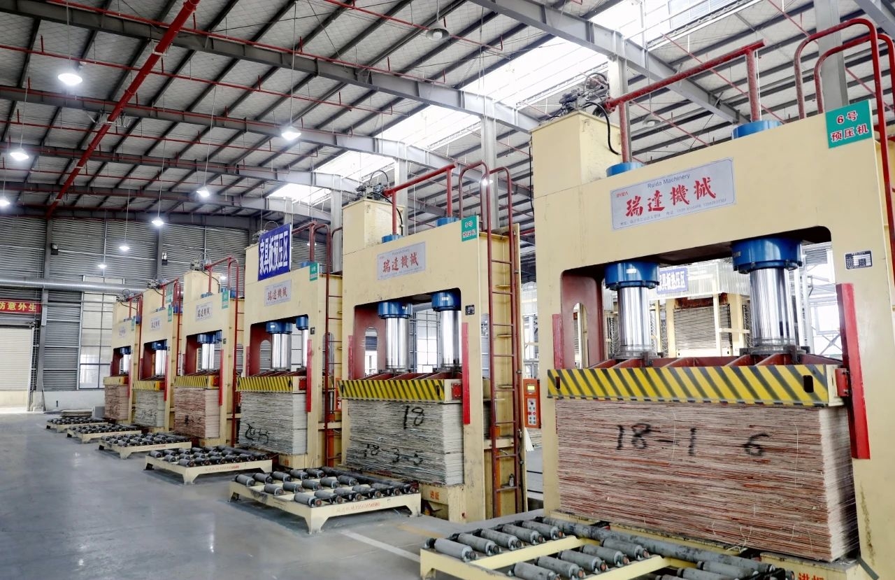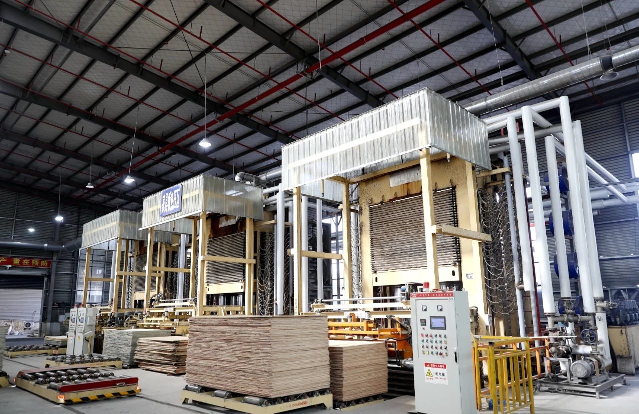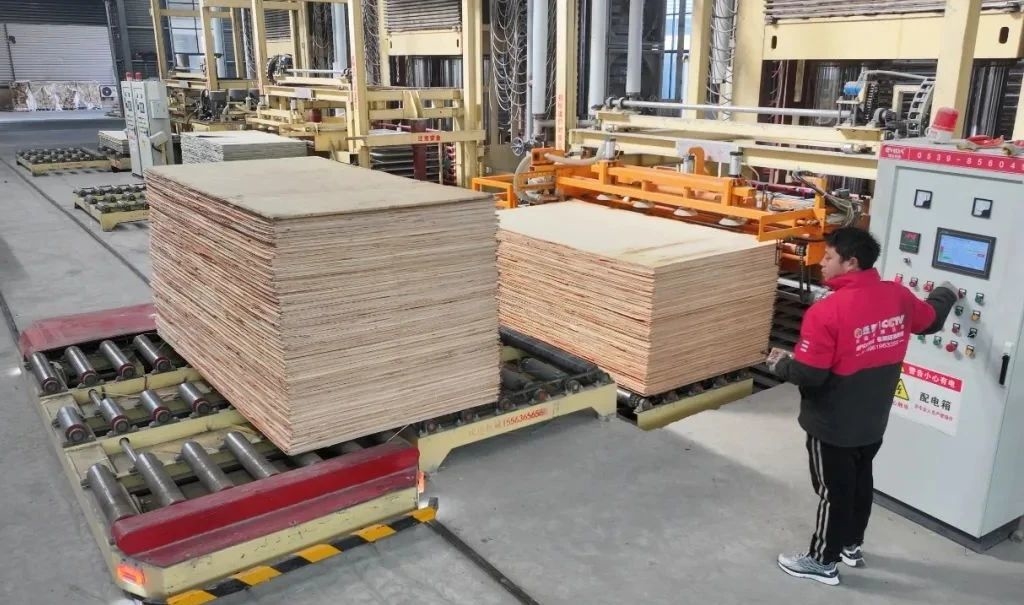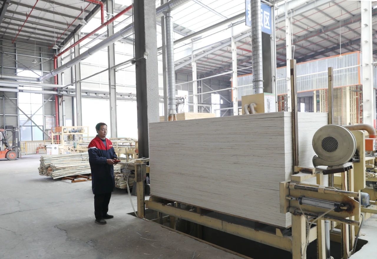 近日上午9点,位于江苏省淮安市淮阴区徐溜工业园区的万木春生产车间内,工人完成备料后,剩下的流程全部交给机器,在完成了涂胶、铺装、冷压、热压等一系列流程后,进入到打包环节。半个月后,这批“淮阴造”将直达波斯湾畔的海外仓……在这场木材加工业的智能革命中,江苏万木春木业有限公司完成了从传统作坊到国家高新技术企业的蝶变。