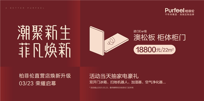 作为千年舟集团高端定制品牌,柏菲伦以匠心沉淀,同时依托千年舟集团健康科技板材的先天优势,焕新升级品牌直营店4.0店态。
