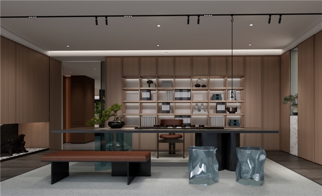 展厅内铺陈十余套沉浸式场景,解构“定制”的固有逻辑,打造“一厅一世界”:极简主义的克制、中古风情的深邃、南洋光影的慵懒、新中式的东方韵律.…实现功能分区智能化、交互场景人性化,完善了品质家居全案生态的全新构建。