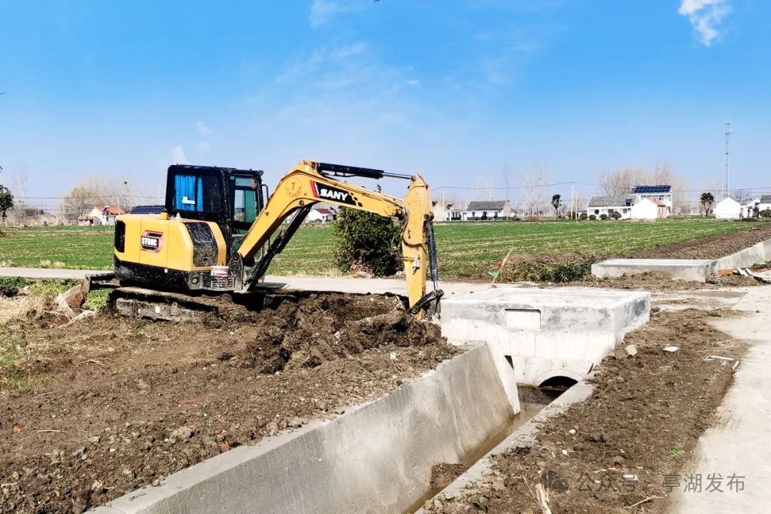 春光明媚,新兴镇倪杰村的田野上一派热火朝天——施工机械穿梭于田间,工人们抢抓有利天气,正忙着铺设灌溉管道、兴修水渠,一幅“田成方、渠相连、路相通、旱能灌、涝能排”的现代农业画卷正徐徐展开。
