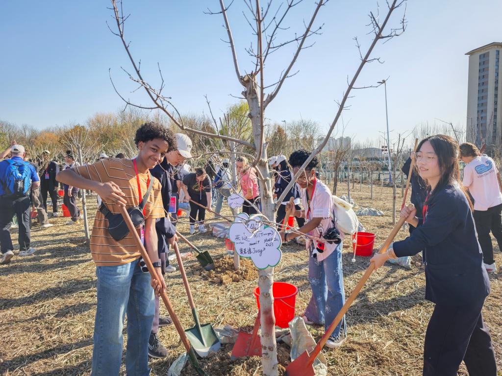 3月20日,春分,参访的美国学生和中国同龄人,在河北省园博园的中美友谊传承青年林,共植友谊树。