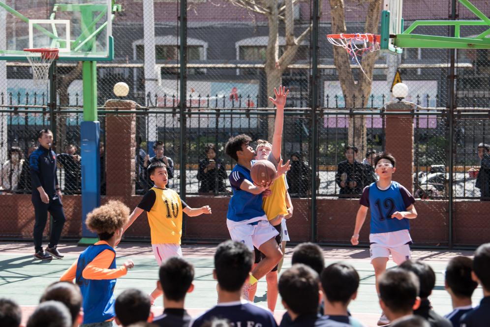 3月19日,中美青少年在石家庄外国语学校打篮球友谊赛。刘尊拴 摄