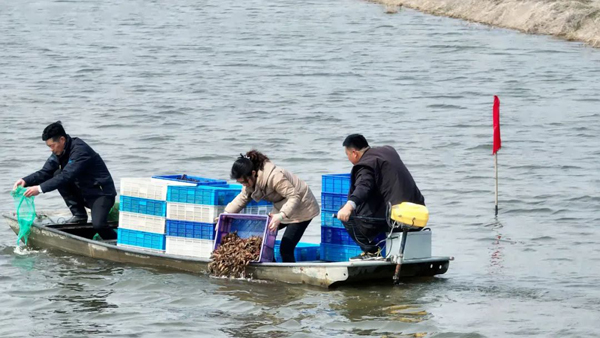 蹲在蟹塘边,手中抓着一只螃蟹,向养殖户展示其螯足、步足尚未充分膨大的特点……3月21日,建湖县九龙口大闸蟹养殖基地,全国人大代表、建湖县高作镇陈甲村党总支书记、天和生态农业合作社理事长鲁曼向养殖户仔细讲解当前的养殖重点。“大闸蟹正从幼蟹向成蟹过渡,完成了2—3次脱壳,进入了生长高峰期,水温在15℃—22℃时,它们的摄食量能达到体重的5%—8%。这个阶段,我们需要重点调控水质、科学投喂,维护水草覆盖率。”