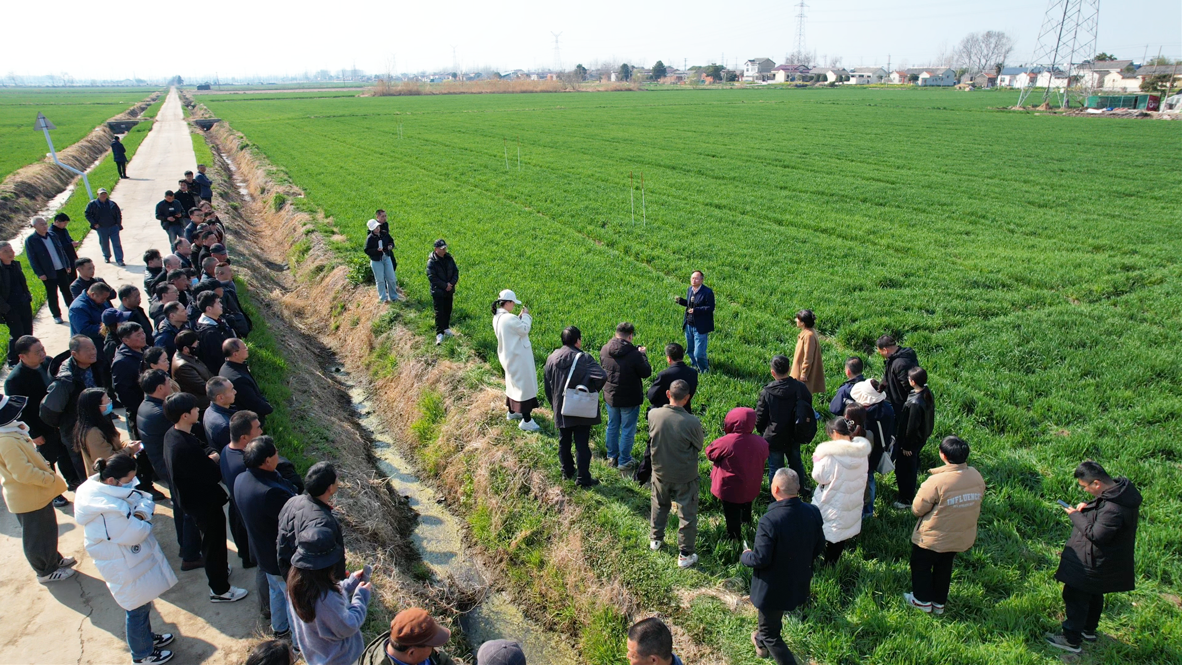 近日,走进江苏省淮安市金湖县银涂镇刘坝村的连片麦田间,一场别开生面的“科技课”正在进行中——金湖县农业农村局把小麦春管促单产提升技术培训会开到了这里,80多名农技专家与种田大户站在田埂旁,细察每一株麦苗的生长密码。