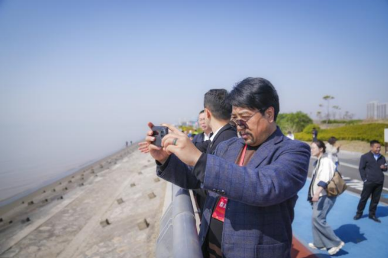 在江海文化展示区,讲解员揭秘这条"生命海堤"的奥秘:“这条蜿蜒的海堤不仅是防洪工程,更将传统渔港升级为文旅综合体,真正实现了从'海边屏障'到'经济走廊'的蜕变。”“原来海堤还能这样打造!”网络名人代表“君王也”指着观景平台感叹,“这里既是防洪工程,又是网红打卡点,周边还带动了民宿、餐饮业,我要让更多网友知道这个宝藏目的地,一起见证江海交汇的万千气象!”