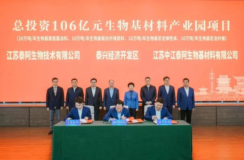 据悉,生物基材料产业是具有显著新质生产力特征的新兴产业。该产业园项目占地500亩,以新型生物基材料为发展方向,规划建设多个大型项目,其中包括20万吨/年生物基聚氨酯涂料、10万吨/年生物基氨纶纤维原料、10万吨/年生物基尼龙弹性体、10万吨/年生物基尼龙纤维项目等。这些项目全部建成后,预计可实现年销售200亿元,将有效地链接生物基产业链上下游,带动形成集聚集群效应,为泰兴经济开发区加快打造长三角生物基材料产业示范基地注入强大动力。