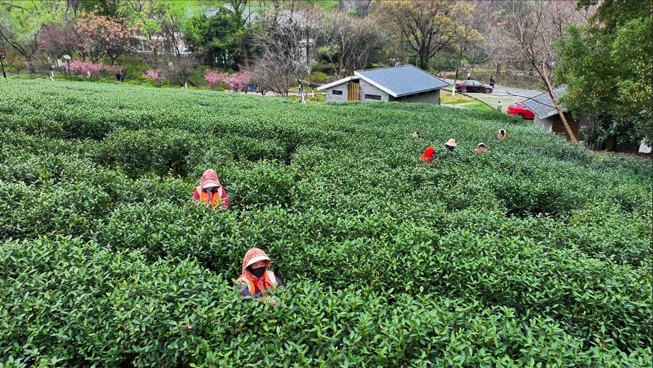 清晨6时,采茶工们腰系竹篓穿梭在茶树间,指尖精准掐取一芽一叶初展的嫩尖,这些鲜嫩的芽叶是制作高品质雨花茶的原料。“今年的芽头多且饱满,内含物质丰富,成品雨花茶品质应该相当好!”南京市雨花茶制茶大师、南京茶叶行业协会副秘书长端凯颇为期待。