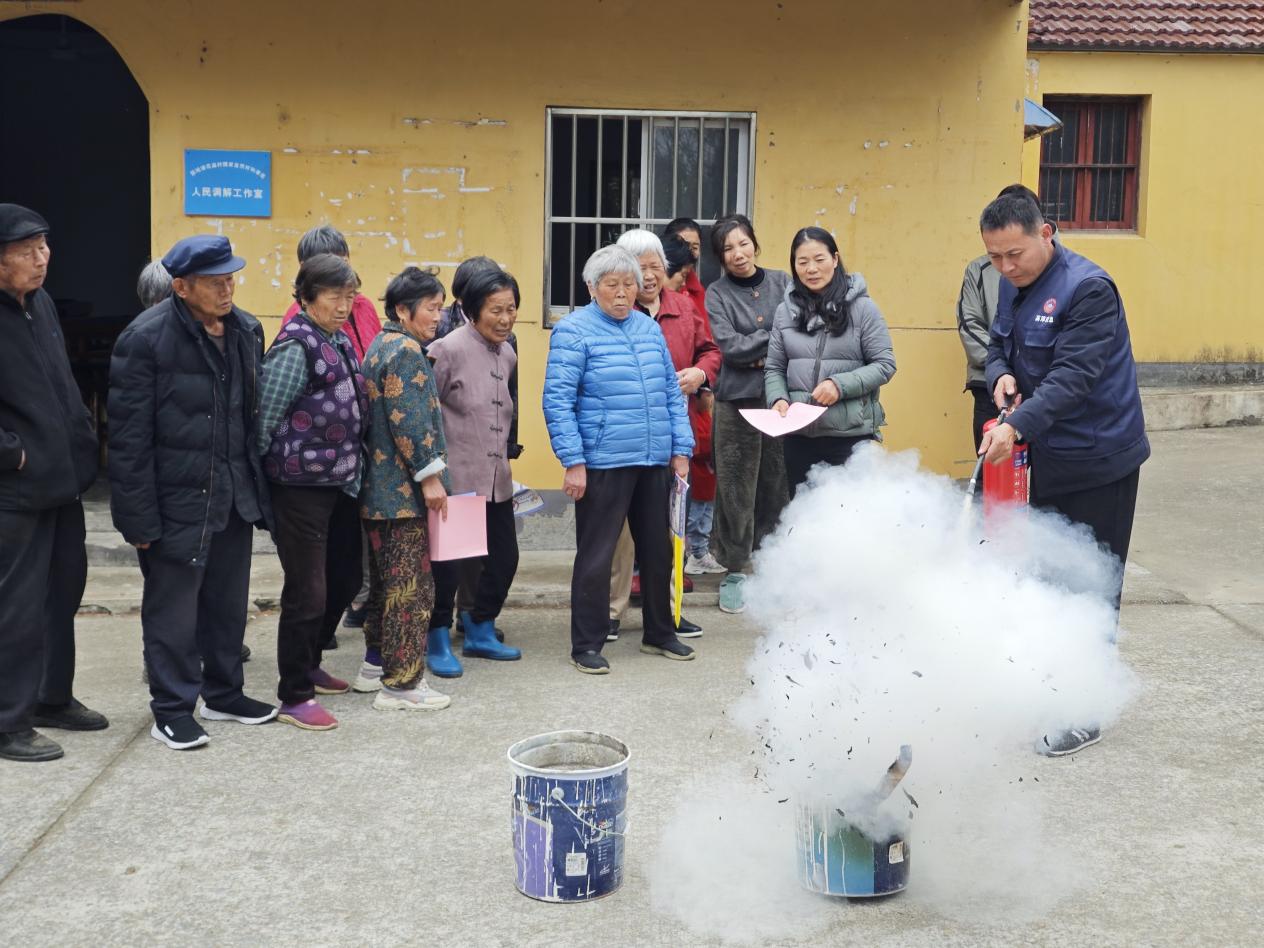在村民文化广场,一场生动的消防应急演练吸引了百余名村民参与。应急网格员现场演示灭火器使用技巧,讲解火场逃生要点,并邀请村民轮番实操体验。随着白色干粉如祥云般笼罩模拟“火场”,村民在实践中掌握了灭火技能。“以前觉得灭火器用不上,今天学了才发现关键时刻能救命!”参与演练的李大姐感慨道。