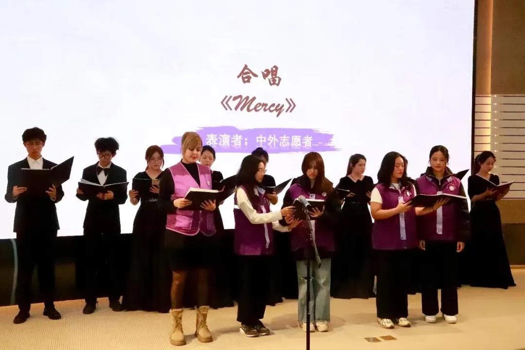 志愿者代表傅云生、李国荣朗诵冯亦同《紫金花》。紫金草艺术志愿者小提琴钢琴演奏《如愿》。中外紫金草志愿者合唱了歌曲《感同身受》。