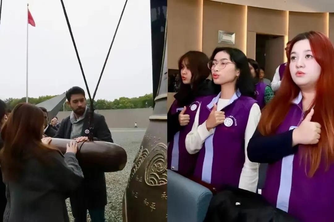 马来西亚留学生方依静代表南京工业大学海外教育学院前来领取“紫金草优秀志愿团队”荣誉证书。作为南工大海外教育学院留学生助理,方依静带领二三十位来自孟加拉国、泰国、印度尼西亚等国的留学生来到纪念馆参与撞响和平大钟仪式、播撒紫金草种子等活动。她说:“战争给人们带来伤痛记忆。我们有些留学生的祖国也经历过这种伤痛,更加能感同身受。所以,我们在纪念馆做志愿者的过程中,体会到和平的可贵。我们把在纪念馆的所见所闻所感,通过个人账号发在海外社交媒体上,让更多人知道这里曾发生过的事,以及现在的南京,人们热爱和平,热爱生活。”