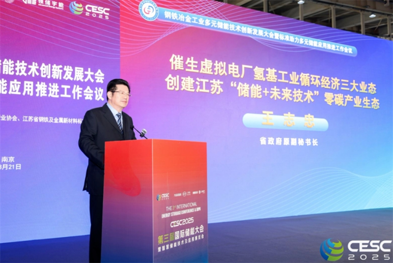 江苏省政府原副秘书长王志忠作为嘉宾应邀出席会议,王志忠在讲话中表示,钢铁冶金行业要坚持技术创新,大力发展“储能+钢铁冶金”三大核心业态,即虚拟电厂、氢基制造和循环经济。推动行业融合,促进储能技术与多行业耦合,尤其是在高能耗行业的跨行业应用。