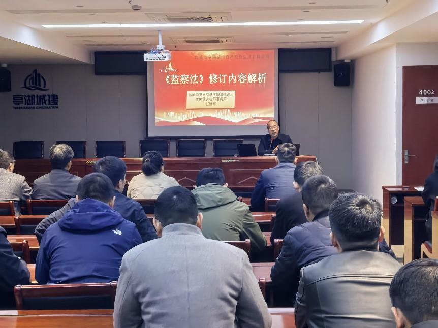 新华报业网讯 为深入贯彻全面从严治党战略方针,进一步强化党员干部依法履职、廉洁自律意识,3月 29日,亭湖城建集团特邀江苏善合律师事务所律师任满军为公司党员干部开展新修订《中华人民共和国监察法》普法专题讲座。
