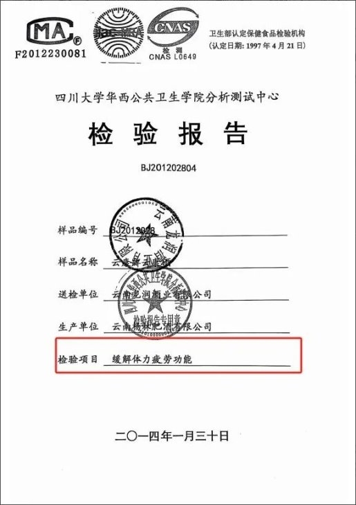 真实性:由四川大学华西公共卫生学院开展的产品安全性、保健功能、质量验证等临床实验验证,依据评价标准,本品(云康酒)具有缓解体力疲劳的功能,粗多糖、总皂苷含量的平均值可达0.011g/100ml、38.9mg/100ml,实验结果真实可靠。