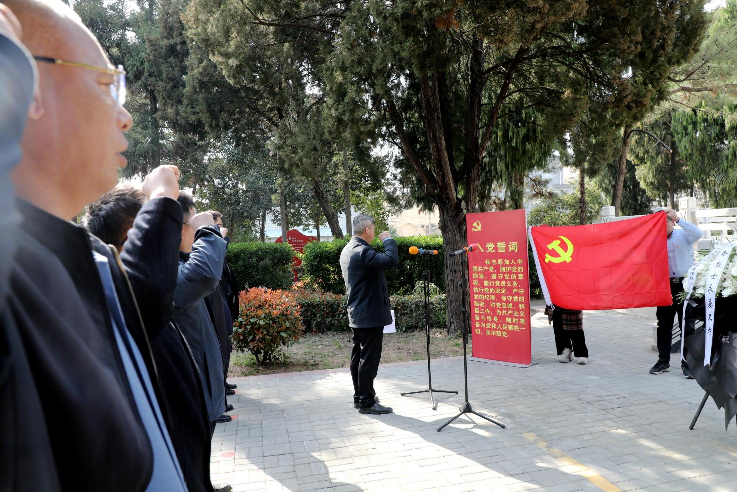 与此同时,全体党员在纪念碑前,面对鲜红的党旗庄严宣誓,重温入党誓词,回顾入党初心,引导党员干部对照革命先烈找差距、明方向,不断增强党性修养,永葆共产党人的政治本色。