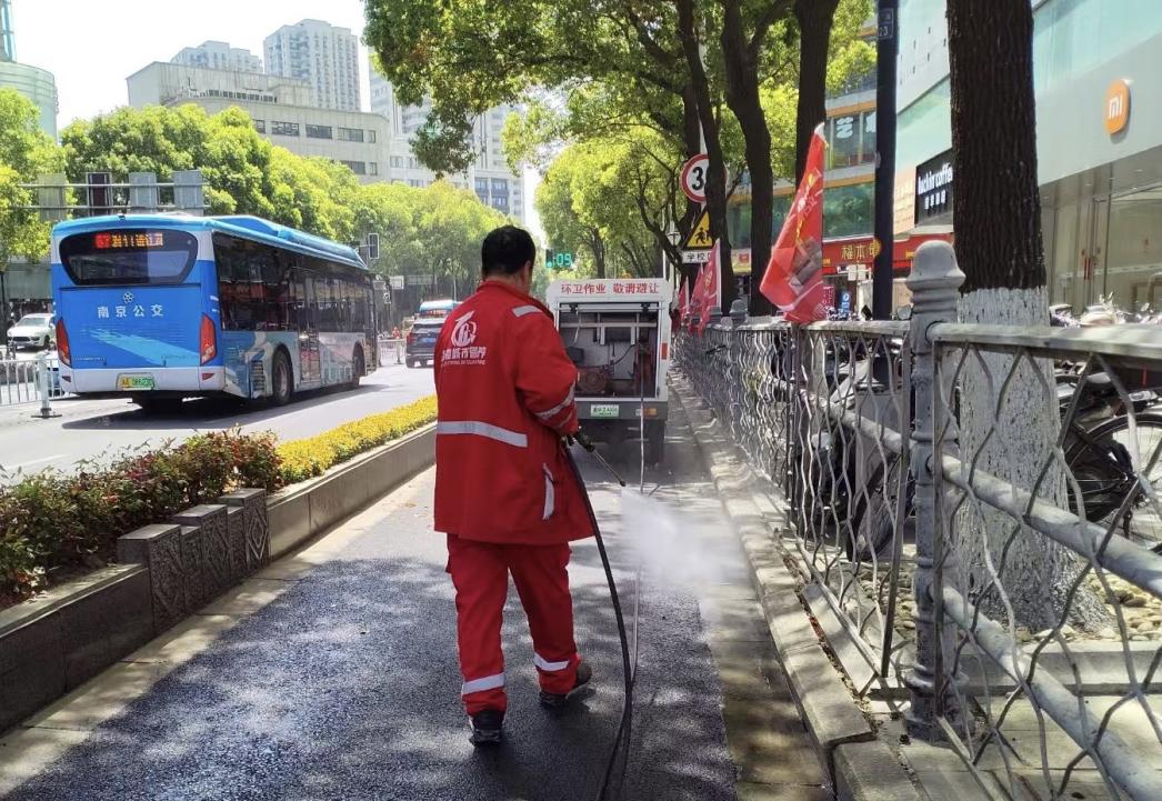 上午10点过后,一辆雾炮车自西向东匀速行驶实施洒水作业。“由于春夏时节风沙较大,落叶飘絮多,我们每天在道路上洒水喷雾和冲洗,遇到大风扬沙天气,还会增加洒水喷雾次数。”作为环卫从业者,南京鼓楼环境卫生服务有限责任公司城北项目部部长胡晔萍见证了街道从尘土飞扬到一尘不染的变迁。