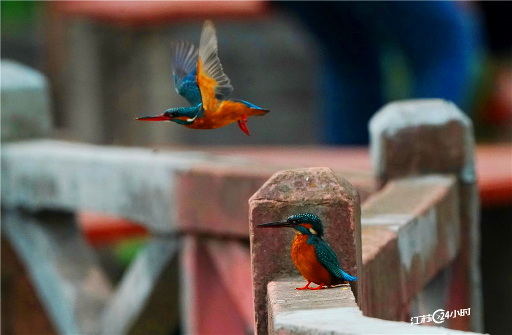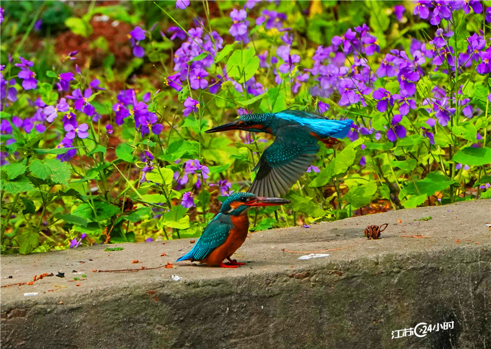 (特约摄影 武家敏 08:22摄 10:16上线)4月6日,在南京古林公园的二月兰水塘边,飞来两只十分美丽的稀客翠鸟,并选择水塘旁觅食、安家,还上演一幕捕鱼求偶,浪漫恩爱秀。翠鸟与二月兰同框,也构成一幅美丽的自然画卷。