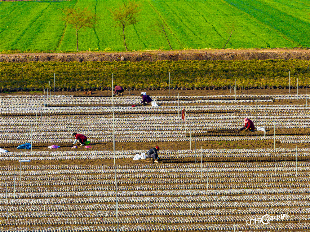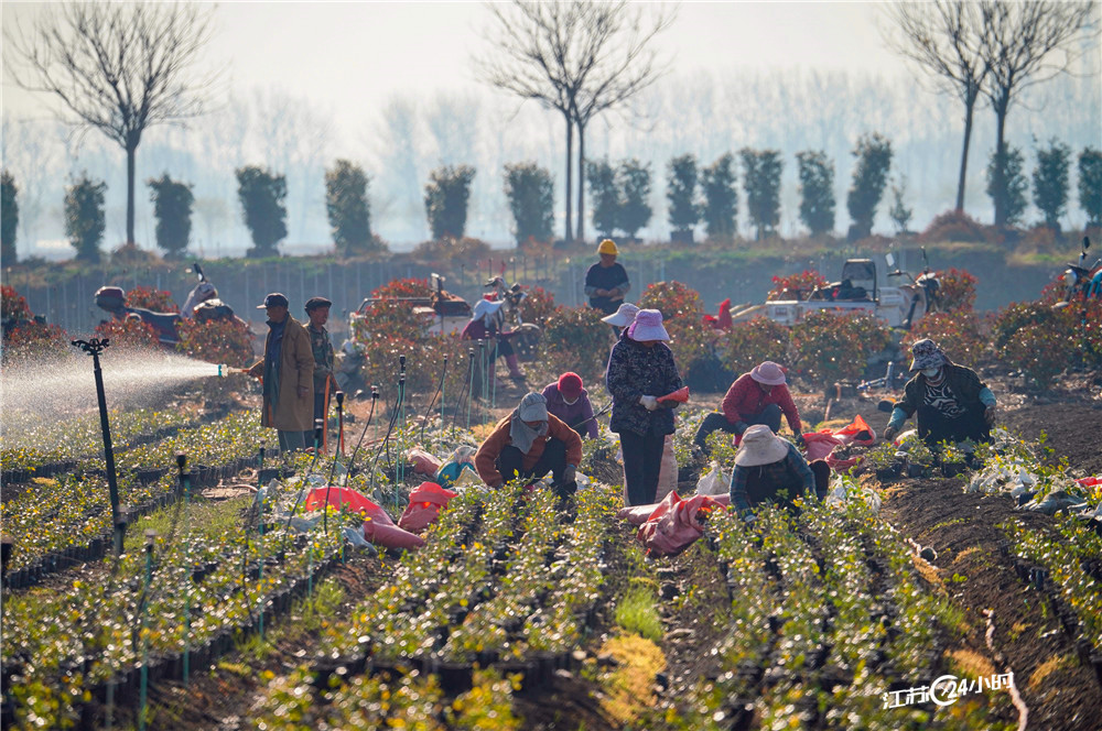 (特约摄影 卢新全 07:37摄 10:13上线)6日,宿迁市沭阳县刘集镇南长庄村民在花田栽植红叶石楠、女贞新苗,翠色秧苗整齐列队,生态苗木产业正为乡村振兴注入活力,铺就增收新画卷。