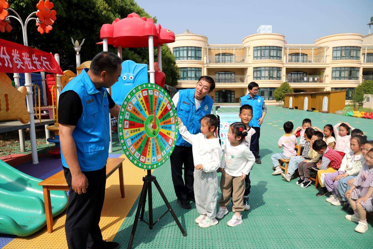 为深入贯彻环保理念,增强幼儿的环保意识,培养良好的垃圾分类习惯,4月9日,由高淳区桠溪街道定埠村牵头联合街道垃圾分类办公室组织志愿者走进定埠幼儿园,通过分类小桶讲解、轮盘指物和卡片投放等方式,为小朋友们带来了一场充满趣味与教育意义的垃圾分类宣传活动。