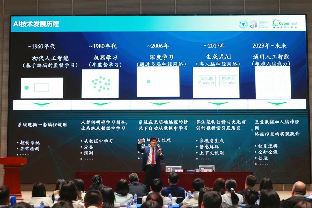 此次活动特邀赛伯乐国际投资董事长、原IBM全球高级副总裁王阳博士,以《人工智能在多领域的革新之路——从DeepSeek看人工智能产业发展》为题进行授课。