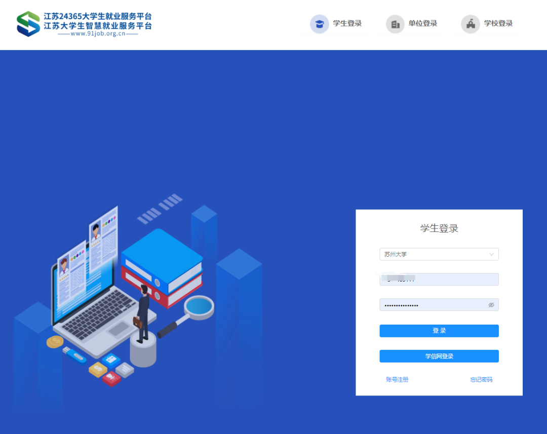 请登录江苏24365大学生就业服务平台(www.91job.org.cn)或各高校就业网学生中心
