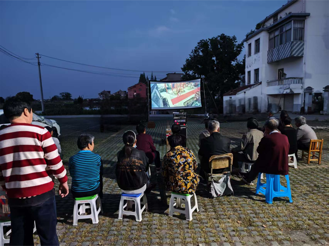 为丰富村民的精神文化生活,4月8日傍晚,阳江镇平干圩村在邵村自然村广场组织“红色电影进乡村 交通安全入民心”为主题活动,通过播放革命题材电影《西府游击队》和交通安全宣传片,将国防教育与安全教育有机结合,吸引了近百名村民参与。