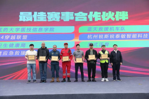 比赛开始前,区委常委、副区长董振华为浙江中医药大学志愿者团队、JEEP4X4穿越联盟、萧山区卫生健康局、戴村群鹰应急救援队、美式正骨、斯锐泰敏智能科技以及蓝天救援机车队颁发了“最佳赛事合作伙伴”奖牌。区人大常委会副主任古涛为获得“忠粉荣耀奖”的两位选手陈平、阎春玲颁发了奖牌。