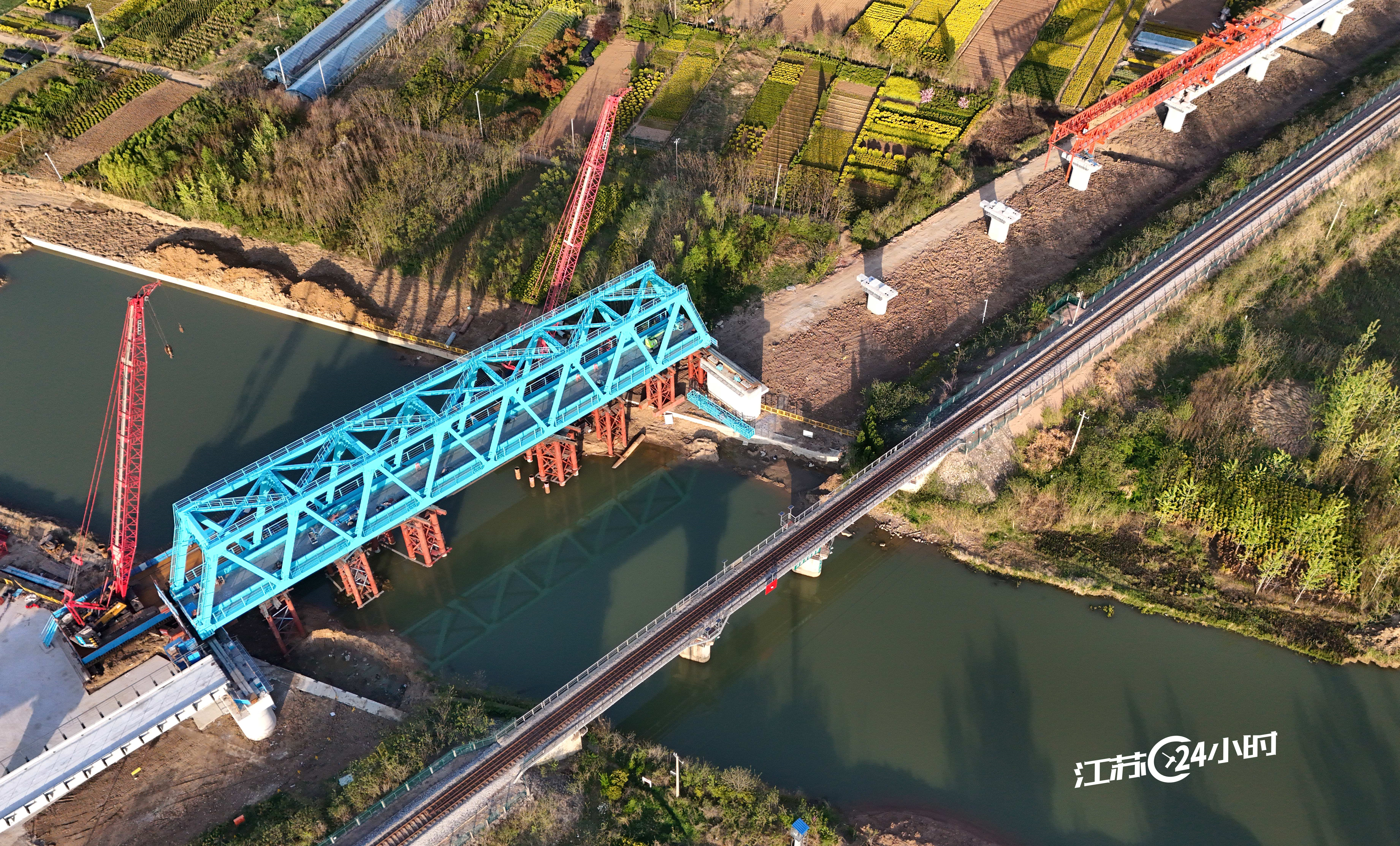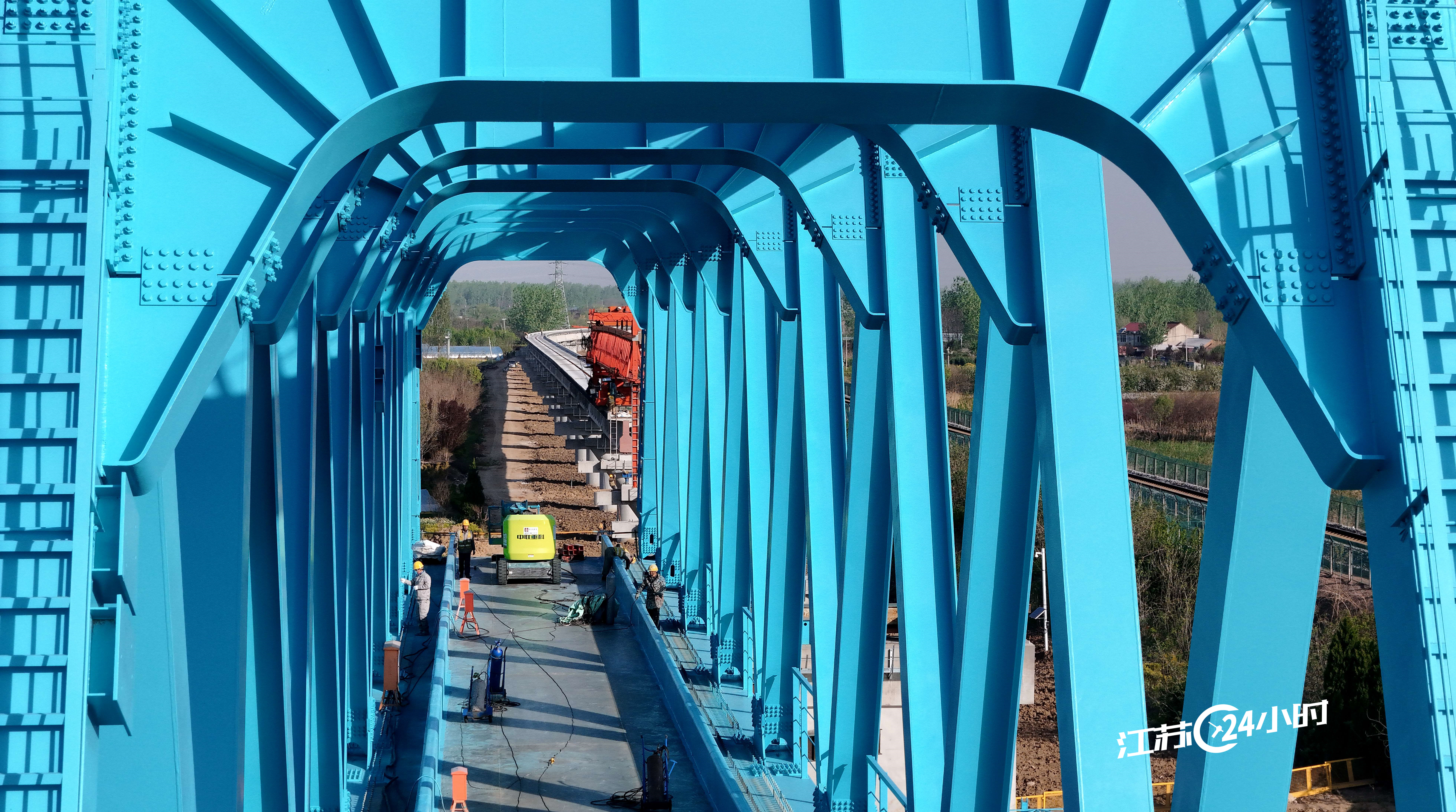 (特约摄影 薄元硕 06:44摄 10:40上线)4月14日,宿迁市沭阳县境内,宿连航道整治配套,新长铁路改建工程建设现场,工人正在加紧作业。