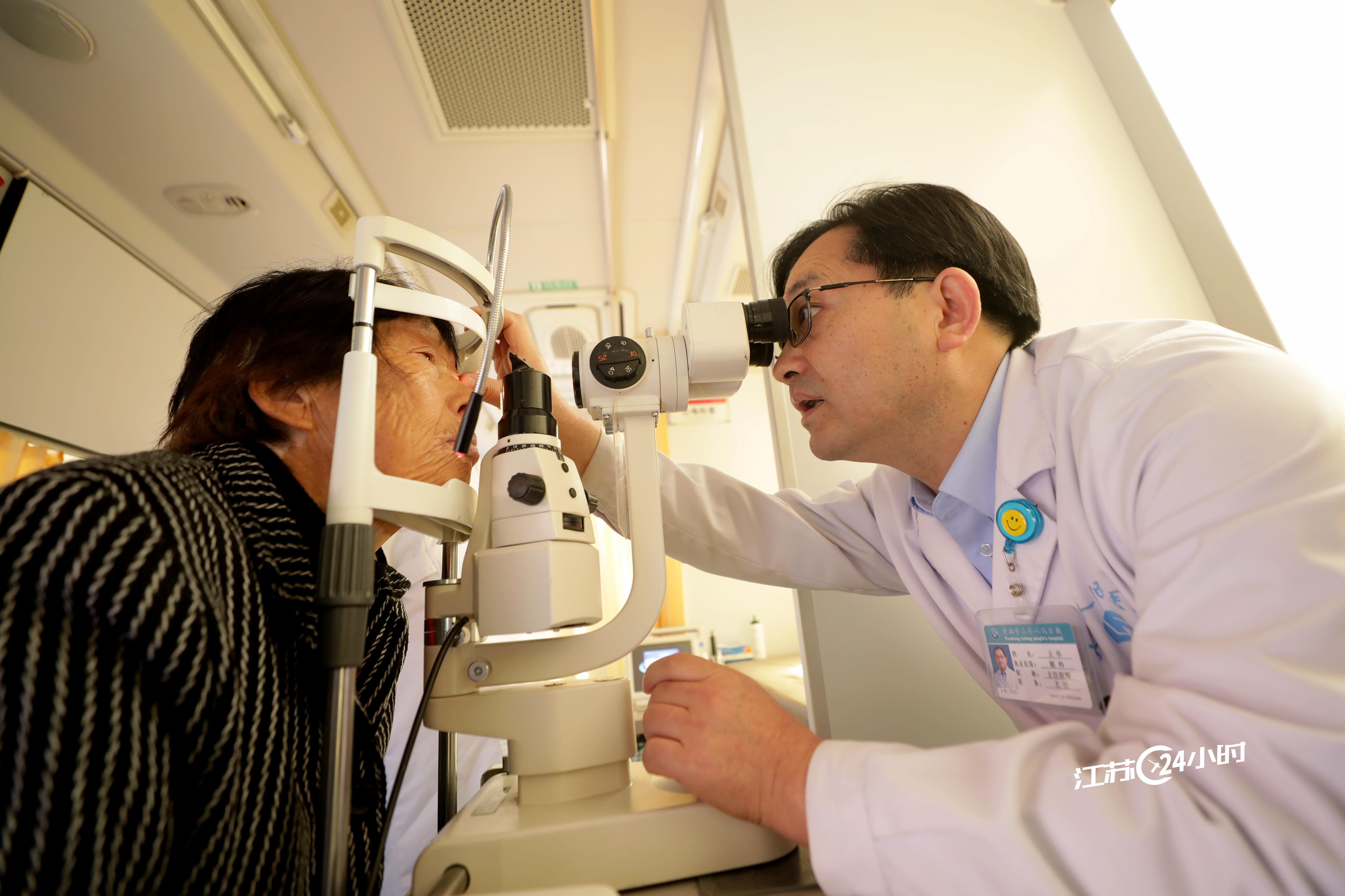 (特约摄影 周汉明 10:35摄 13:40上线)4月14日,盐城市大丰区残联联合大丰区人民医院、草堰镇残联,把“流动医院”服务车开到草堰镇,给全镇白内障等眼疾患者群众进行眼睛检查,并指导治疗方案。