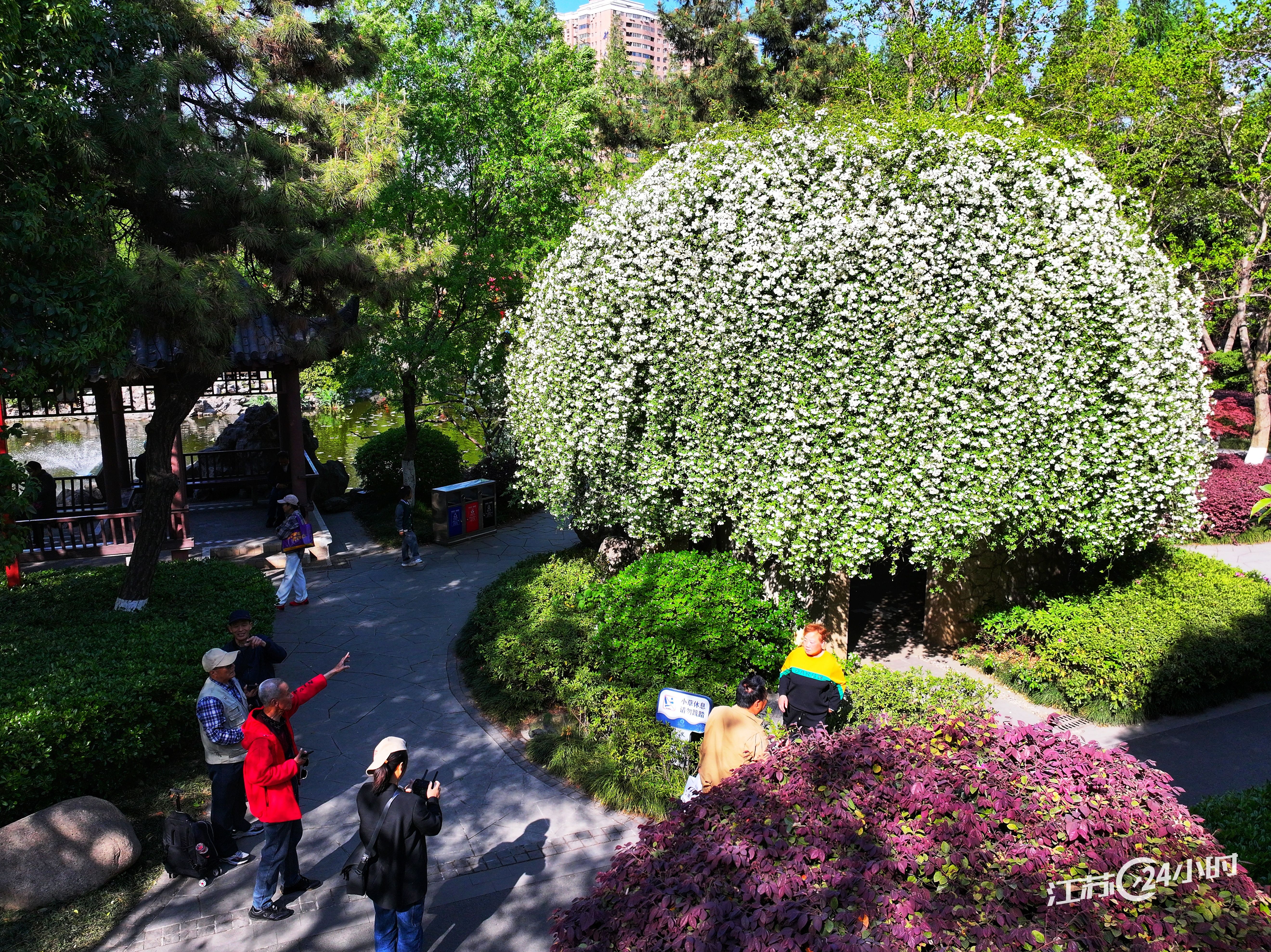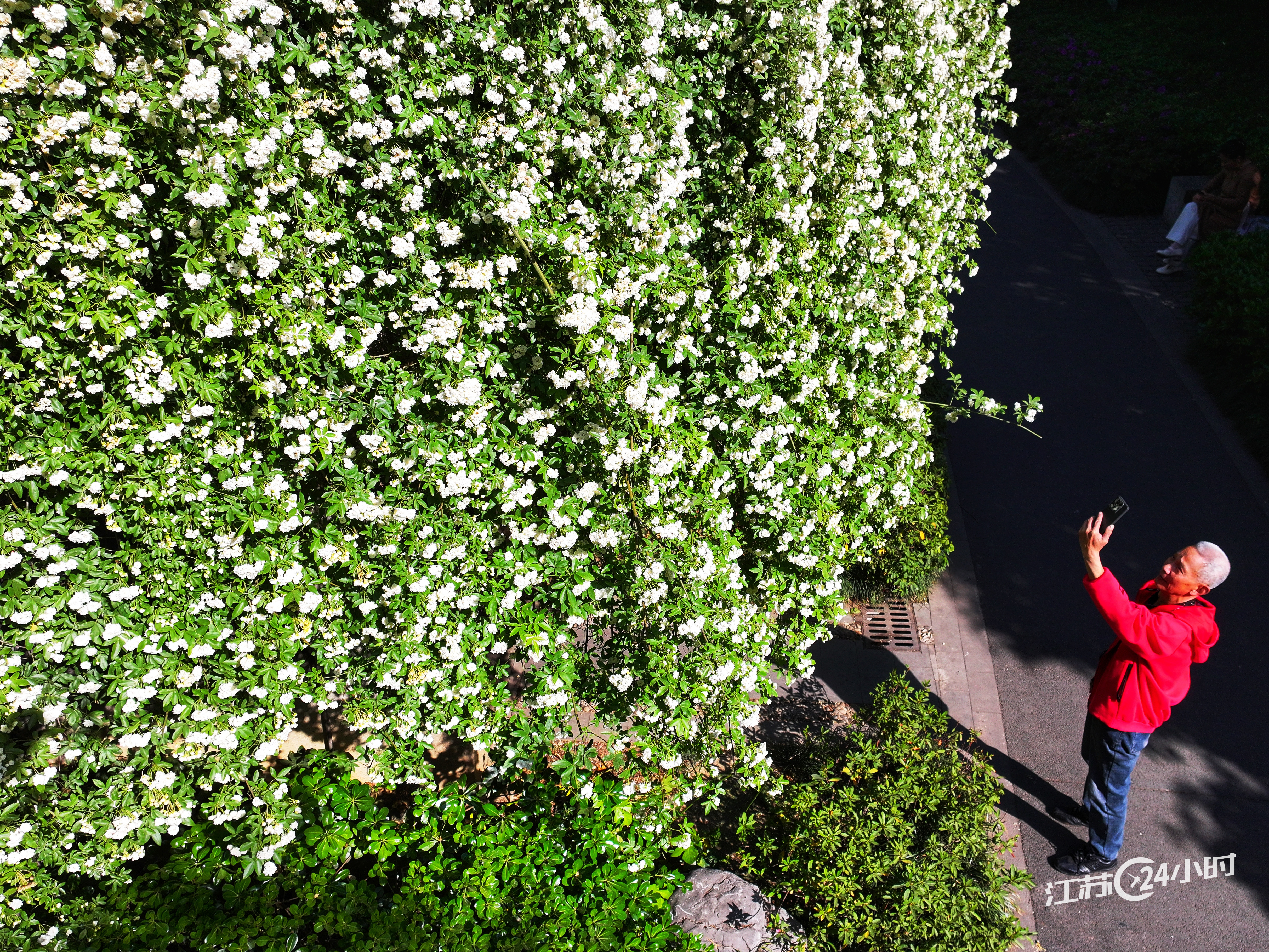 (记者 赵亚玲 16:10摄 16:40上线)4月14日,南京郑和公园内的木香花迎来盛花期,繁花似锦,如飞雪瀑布般倾泻而下,重重叠叠的花瓣在阳光下晶莹剔透,吸引众多市民前来拍照打卡,共赴这场春日花事。