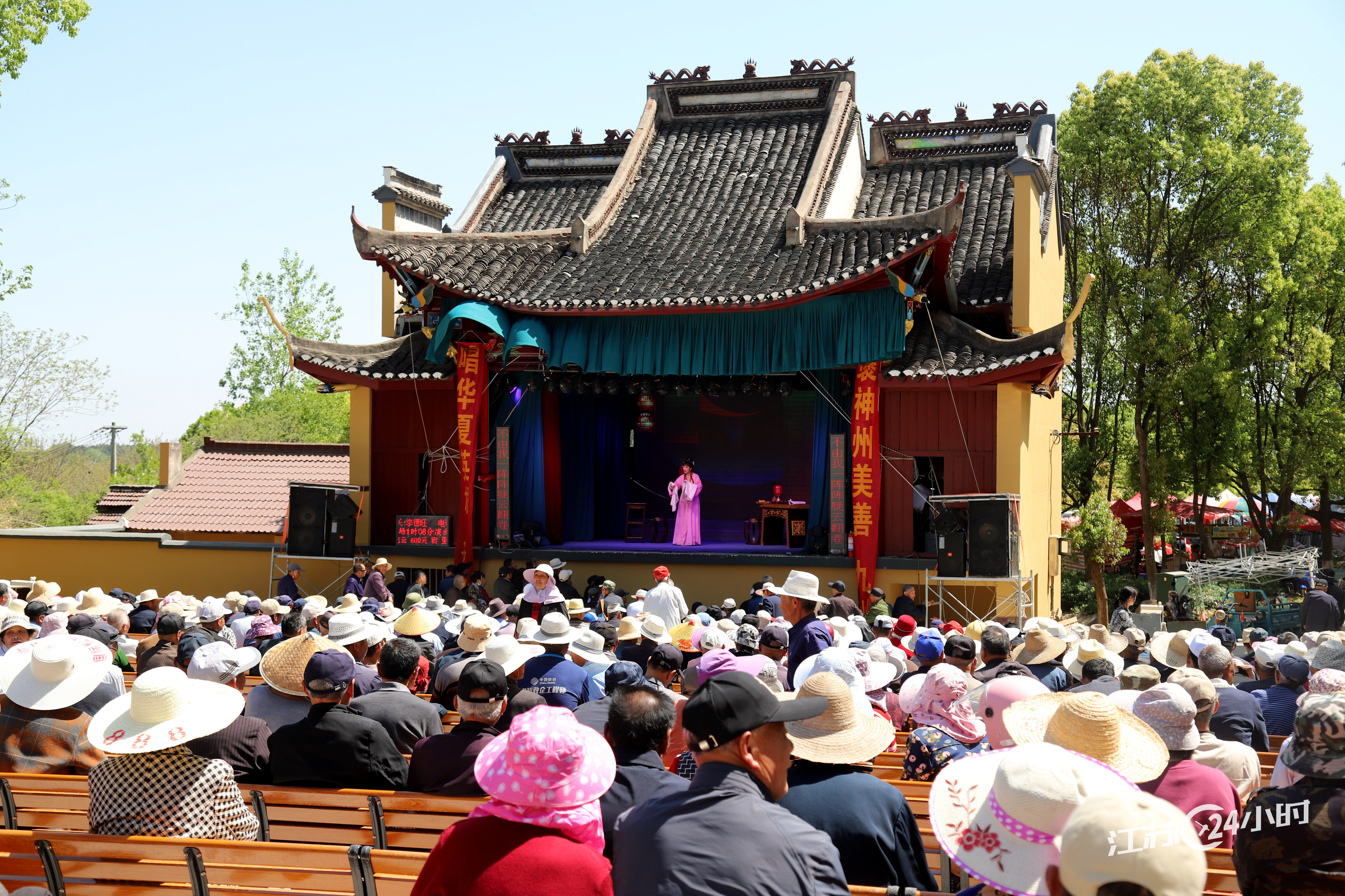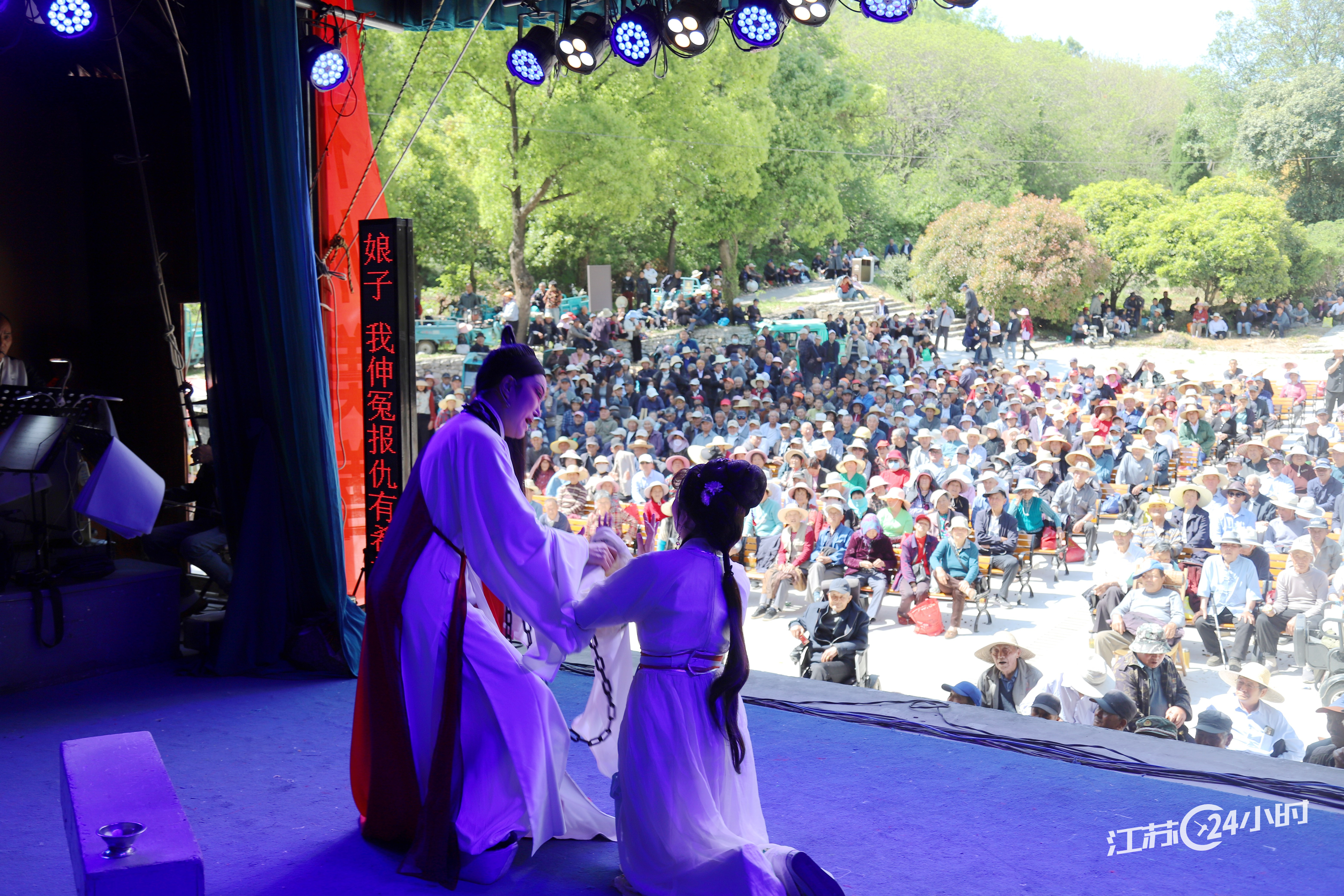 (特约摄影 高晓平 13:38摄 16:30上线 )4月14日,南京市高淳区桠溪街道蓝溪村大山戏楼上,演员正在表演越剧《何文秀》。据悉,为丰富群众文化生活,4月14日至16日,蓝溪村专门邀请越剧团来村里演出,三天里为村民演出6场越剧大戏,让村民在家门口享受文化大餐。