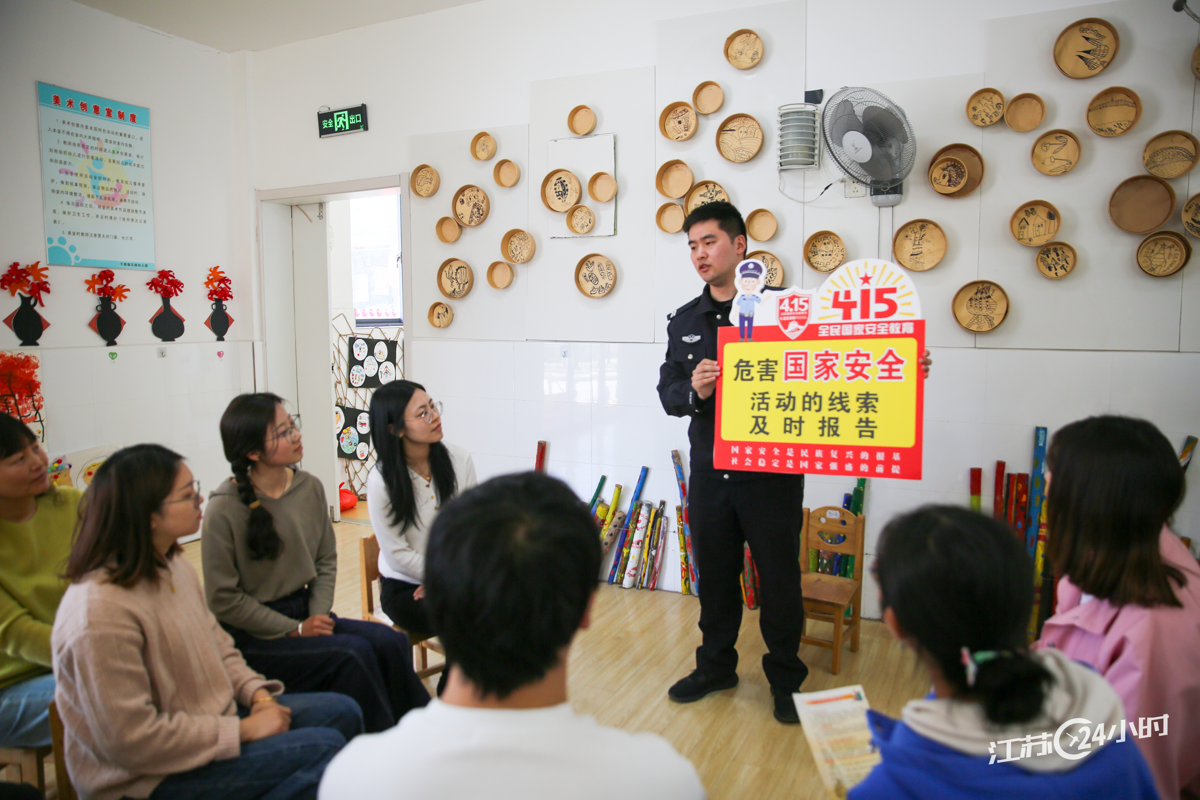 (特约摄影 徐慧 12:03摄 16:45上线) 4月14日,如皋市下原镇花园幼儿园内,民警为青年教师开展国家安全知识教育课堂,让青年教师在教育活动中学习国家安全知识,提升国家安全意识,自觉维护国家安全。