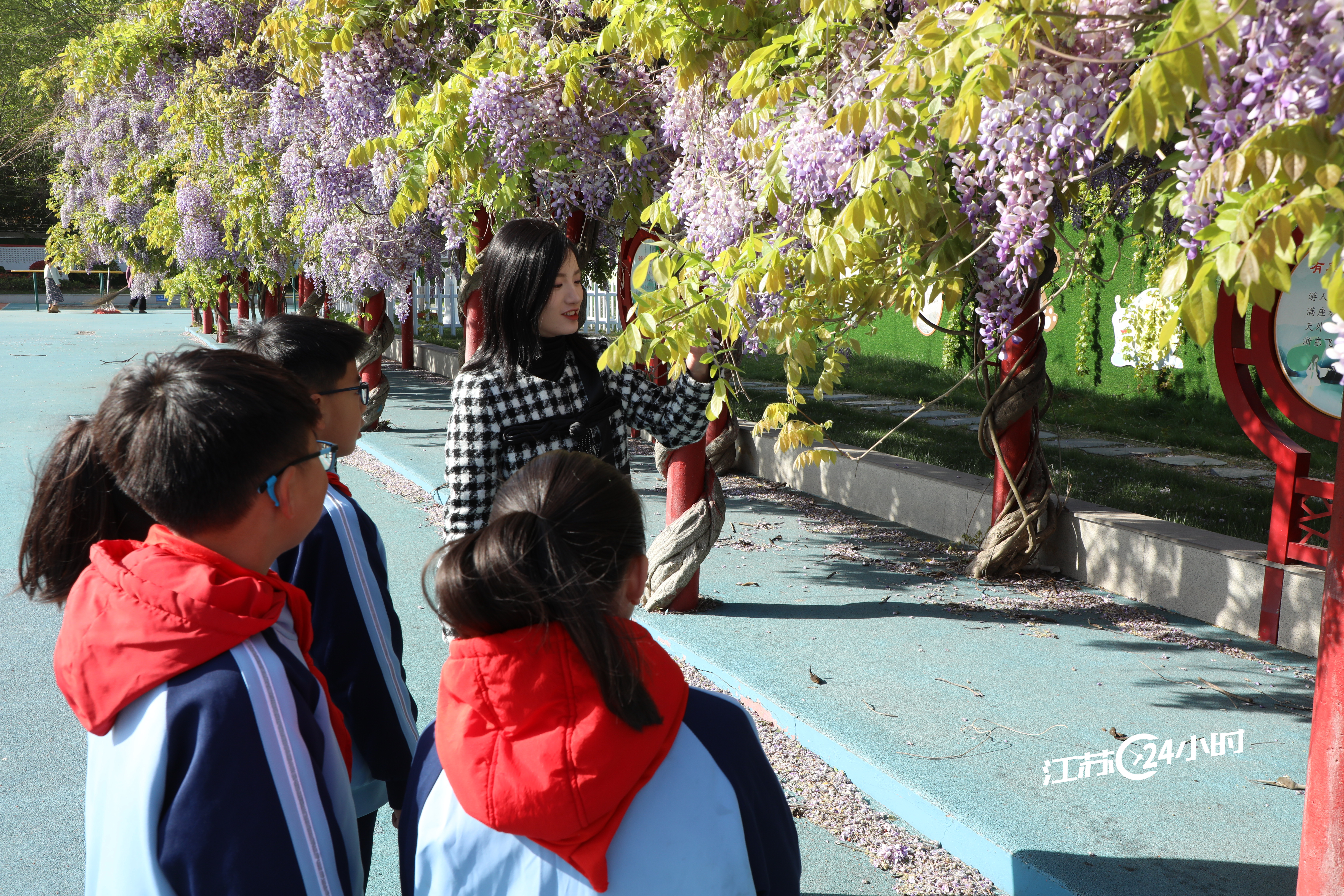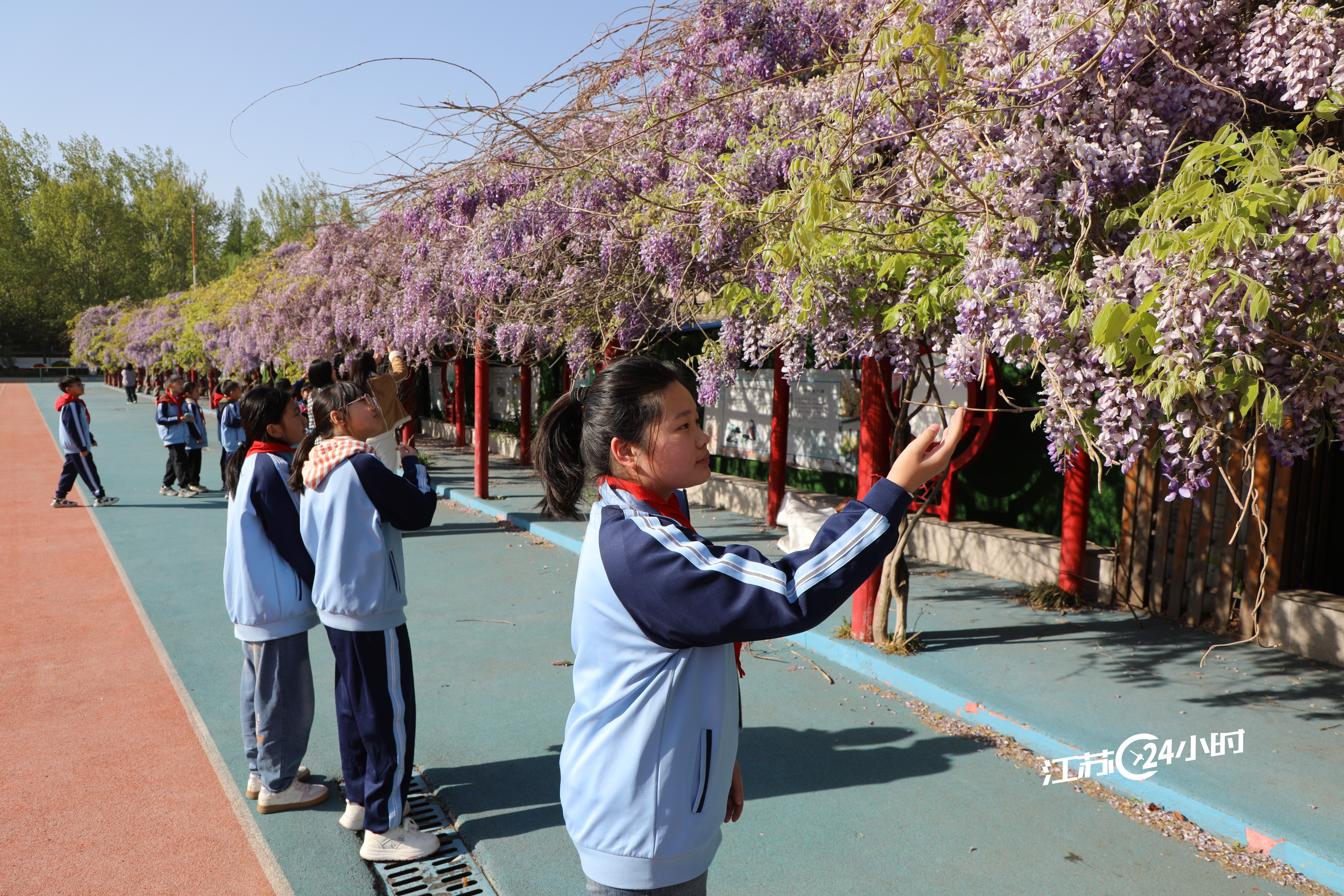 (特约摄影 顾建 刘瑛瑜 08:03摄 09:03上线)4月14日,阜宁县实验小学向阳路校园内百米文化长廊上的紫藤花竞相怒放,吸引了师生前来观赏、打卡,感受春暖花开的美好时刻。