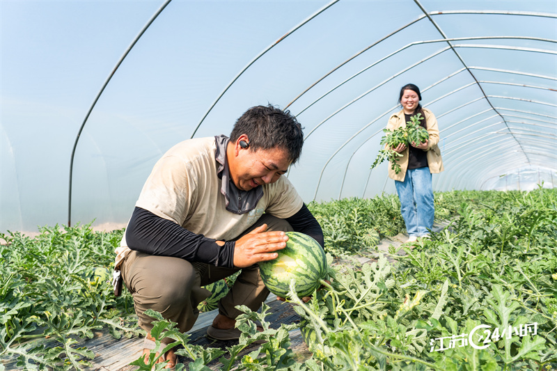(特约摄影 邢彬 15:11摄 19:00上线)4月14日,瓜农正在张家港市常阴沙现代农业示范园区常西社区的西瓜大棚内忙着采收西瓜,准备供应市场。