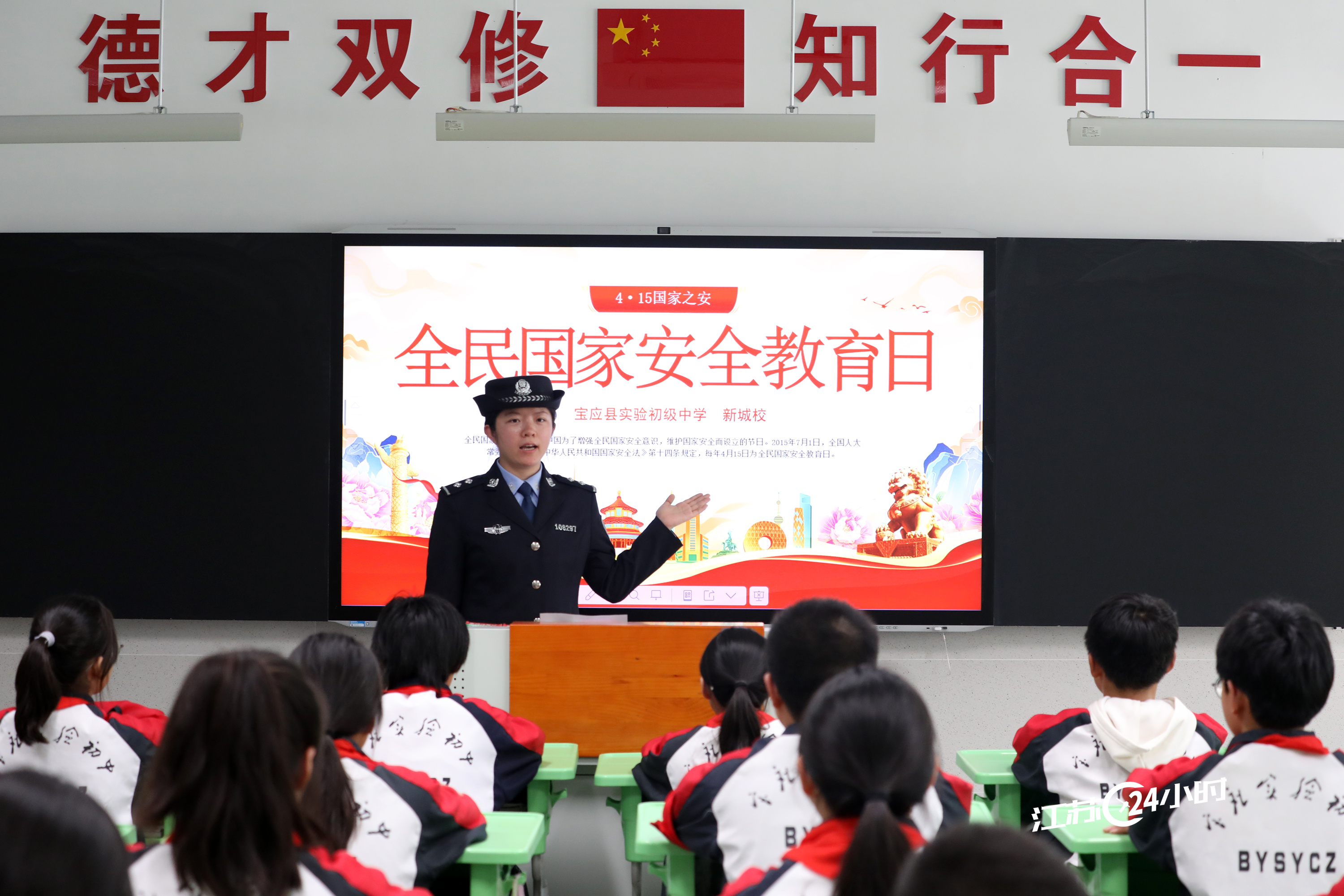 (特约摄影 沈冬兵 08:39摄 10:50上线)4月14日,宝应县公安局派出民警走进实验初级中学新城校开展“全民国家安全教育日”主题系列活动,增强孩子们维护国家安全意识,共同迎接4月15日全民国家安全教育日的到来。
