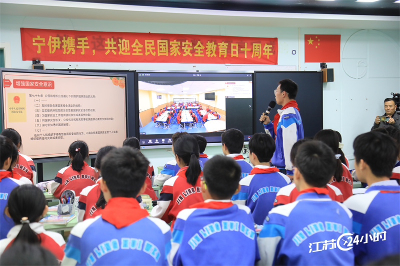 (记者 刘莉 16:01摄 18:40上线)4月14日,一场别开生面的国家安全教育课通过视频连线,在江苏南京的金陵汇文学校和新疆伊宁的第二十八中学同步展开,两地学生共同学习国家安全知识。