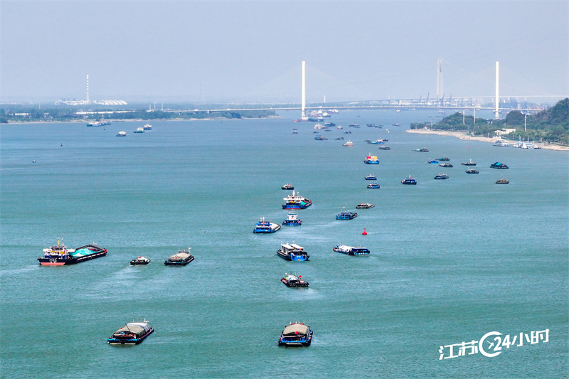 (特约摄影 方东旭 14:05摄 19:05上线)4月14日,各类船舶在长江南京段有序航行,一派繁忙景象。