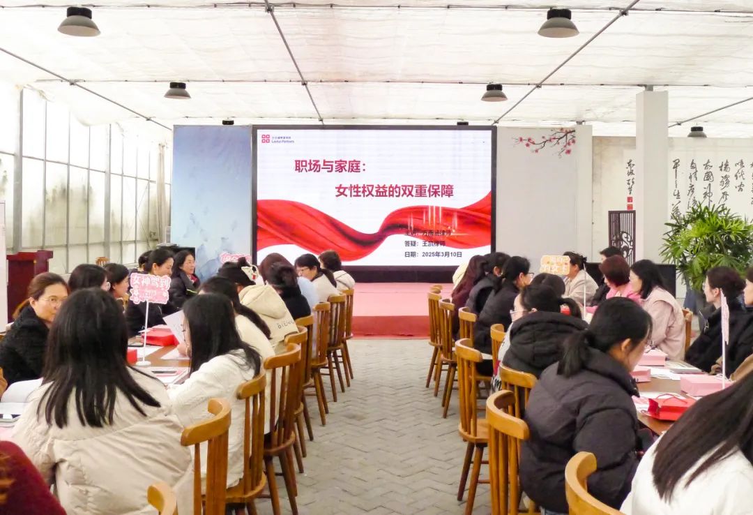 北京市兰台(无锡)律师事务所为来自企事业单位的40名女性职工开展了一场主题为“职场与家庭:女性权益的双重保护”的普法公益讲座。讲座内容主要以女性在职场与婚姻中应享有的权益为主,从“女性在职场中的休假权益”和“女性在婚姻中的经济权益”两个层面展开。此次讲座不仅为女性职工普及了法律知识,更通过互动交流提升了妇女群体依法维权的信心与能力,为营造全社会共同维护妇女权益的和谐氛围贡献了力量。