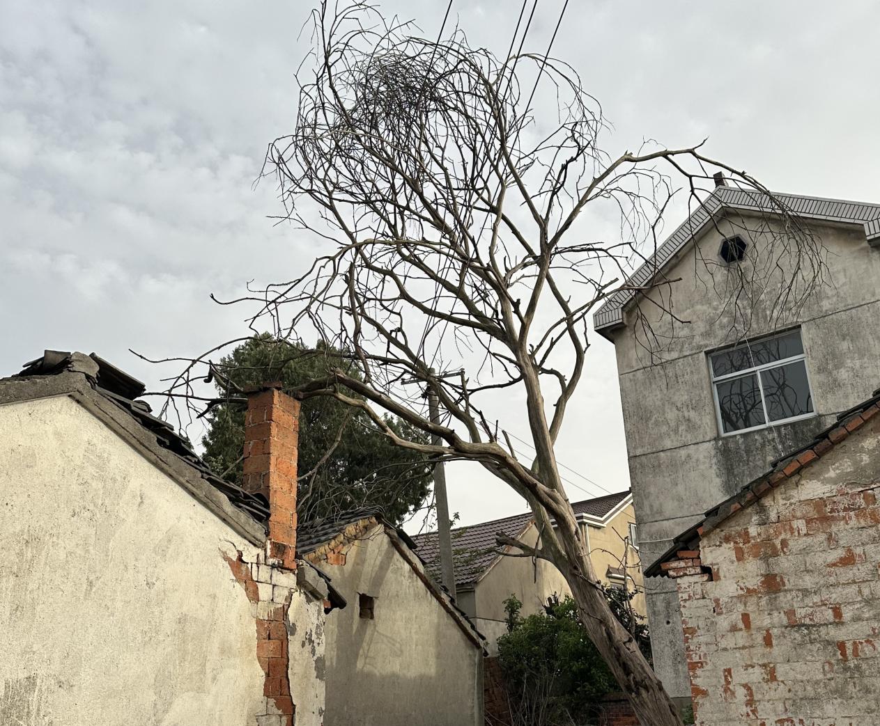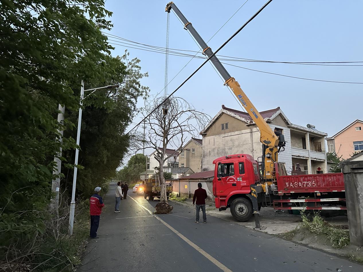 近日,持续大风侵袭,高淳区固城街道漕塘村井头自然村一棵直径约40厘米的大树突然倒伏。这棵大树倒伏后,枝干挂在周边电线上,树枝散落一地,给过往行人和周边房屋带来极大安全隐患。