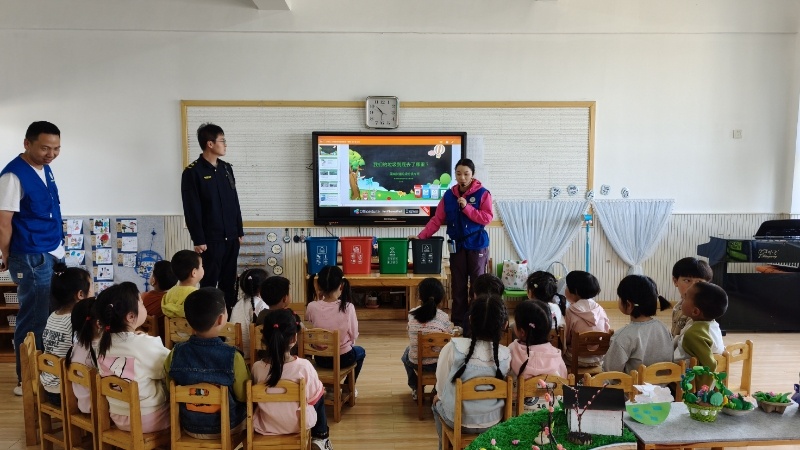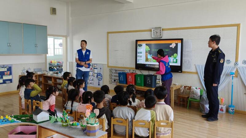 为提升学生垃圾分类意识,培养垃圾分类习惯,达到教育一个学生,带动一个家庭,文明整个社会的目的,4月15日上午,高淳区固城街道环卫办工作人员、志愿者联合固城村委工作人员在固城幼儿园举办垃圾分类课堂微宣讲活动。