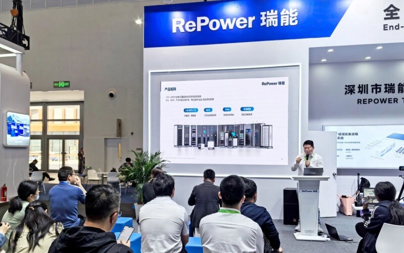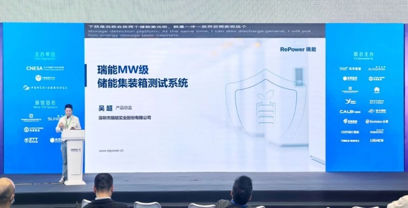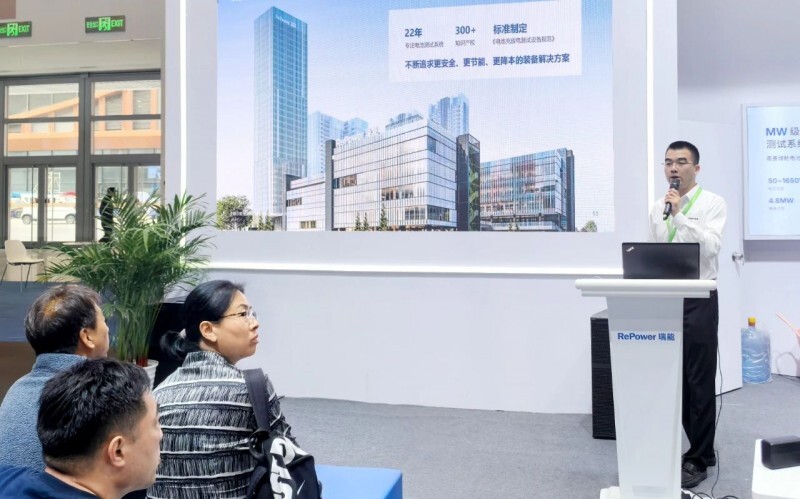展会首日,瑞能股份在展会主会场进行“瑞能MW级储能集装箱测试系统”新品发布,吸引了众多行业专业观众及媒体关注。该系统针对规模化储能场景下的测试需求,突破传统测试技术局限,可实现对储能集装箱整箱性能测试、下线检测及认证测试,精准识别电池老化、热失控等隐患,为大规模储能项目的质量管控及运维提供了可靠技术支撑。