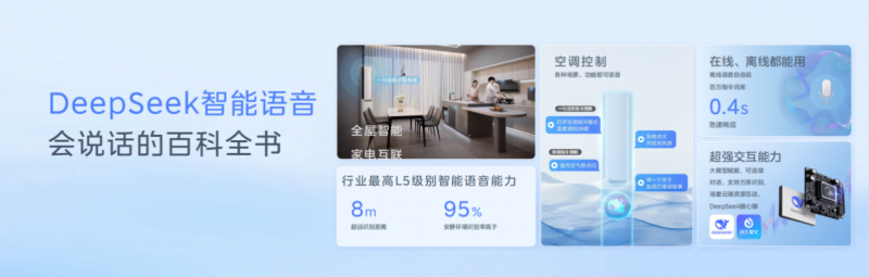 同时,作为美的首款搭载DeepSeek语音大模型的AI产品,美的鲜净感空气机T6凭借其L5级别智能语音交互技术,可在0.4S内响应用户指令进行自主运行调节,并凭借达到8m的超远距离识别能力,让用户解放双手享受智慧化生活体验的同时不必再“多走一步”。依托于大模型赋能下的超强交互能力,这款产品不仅可以30S内连续对话无需重复唤醒,且强大的方言和模糊语义识别能力也能满足多种人群的使用需求,如置身于真人交互场景之中,显著提升了交互的便捷性与自由度。