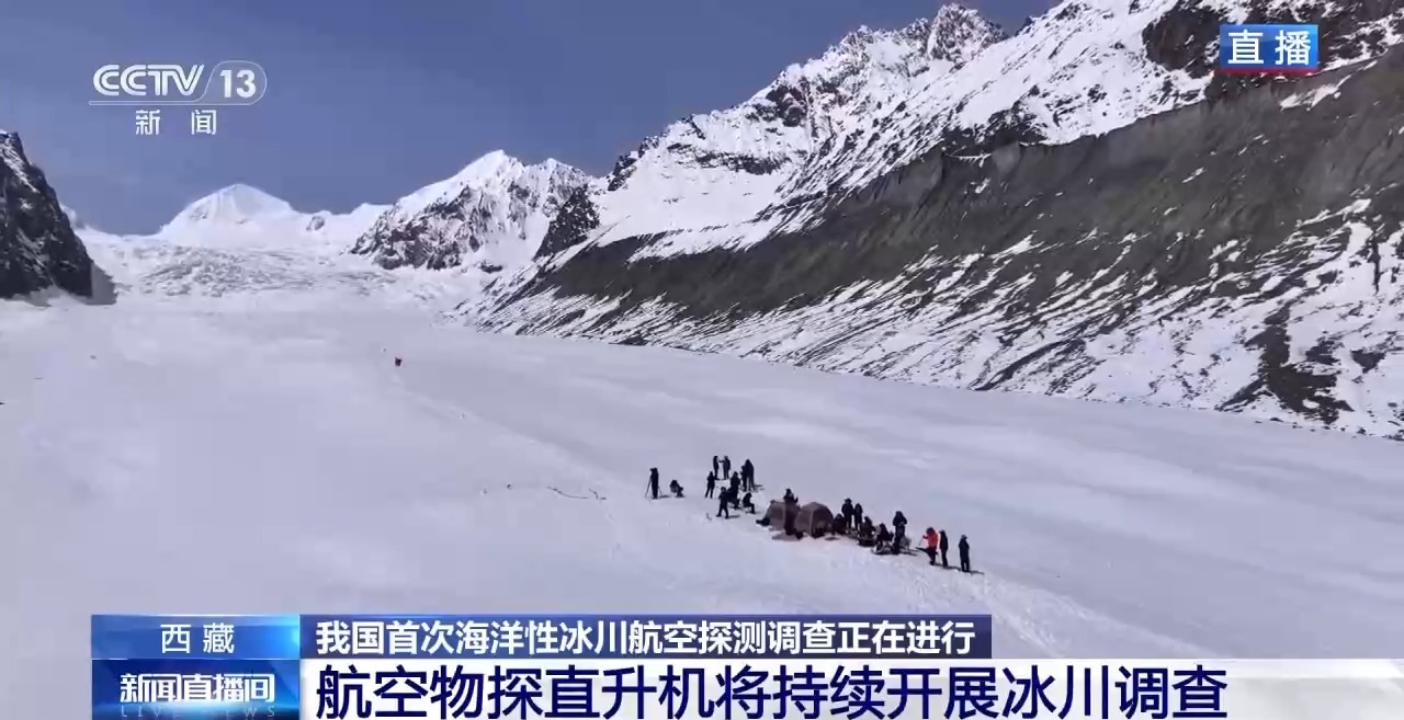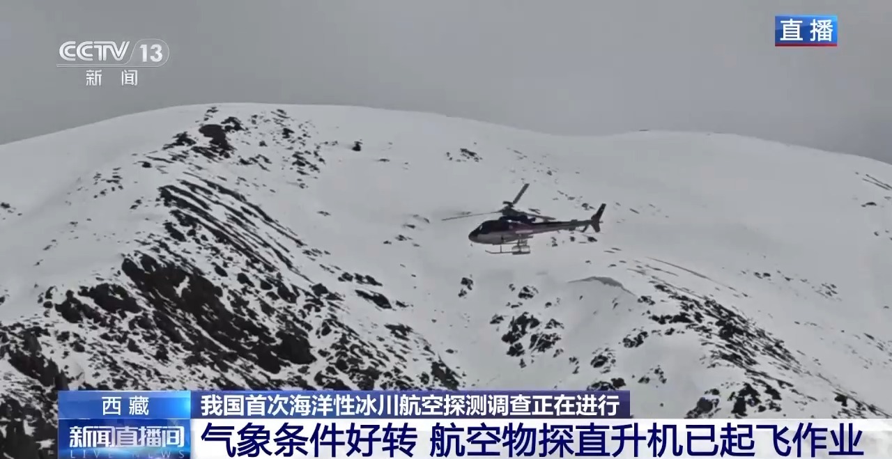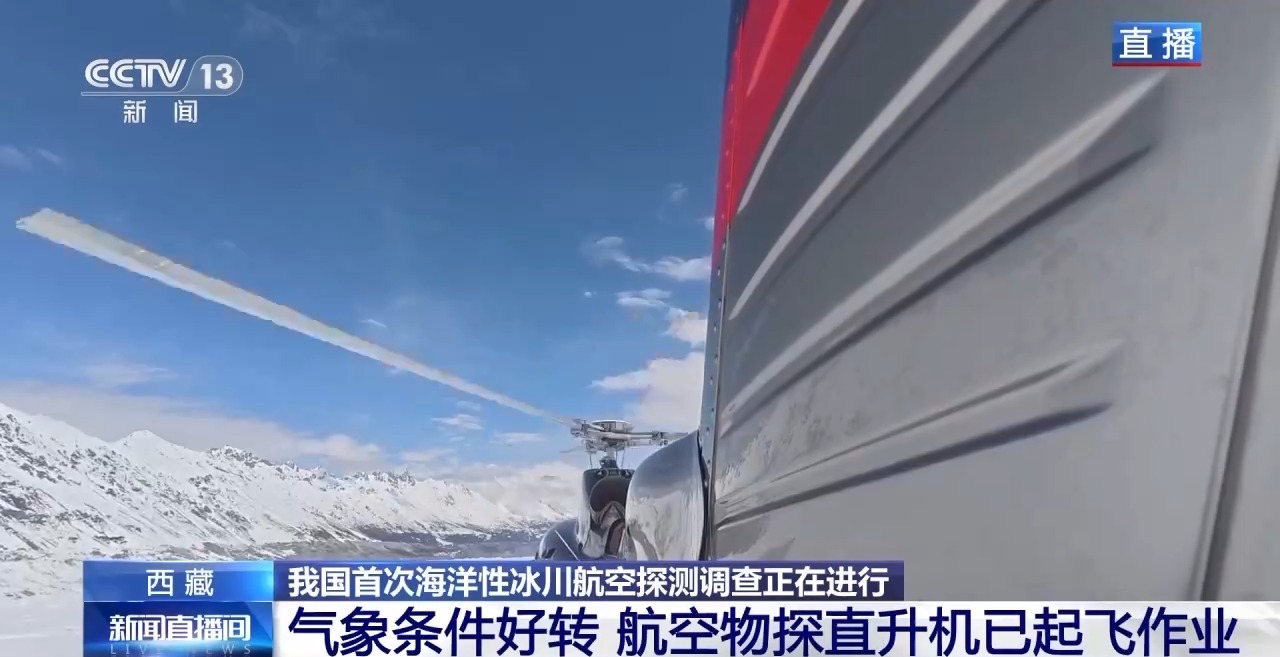 我国首次海洋性冰川航空探测调查目前正在进行,今天进入调查的第三天。前两天,由于大风、冰雪等不利天气影响,探测任务主要进行的是地面作业,那么今天的情况如何?