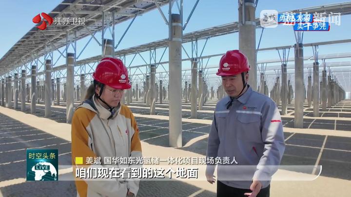 国华如东光氢储一体化项目现场负责人姜斌说:“我们现在看到的这个地面是我们经过一个处理,原来这个地面是有一个外来入侵物种,叫做互花米草,有了这个植物,其他的海生植物都不生长,我们是把这个互花米草先刈割,然后深翻两米,把整个生态治理之后,我们才在这个位置建设了一个光伏项目。”