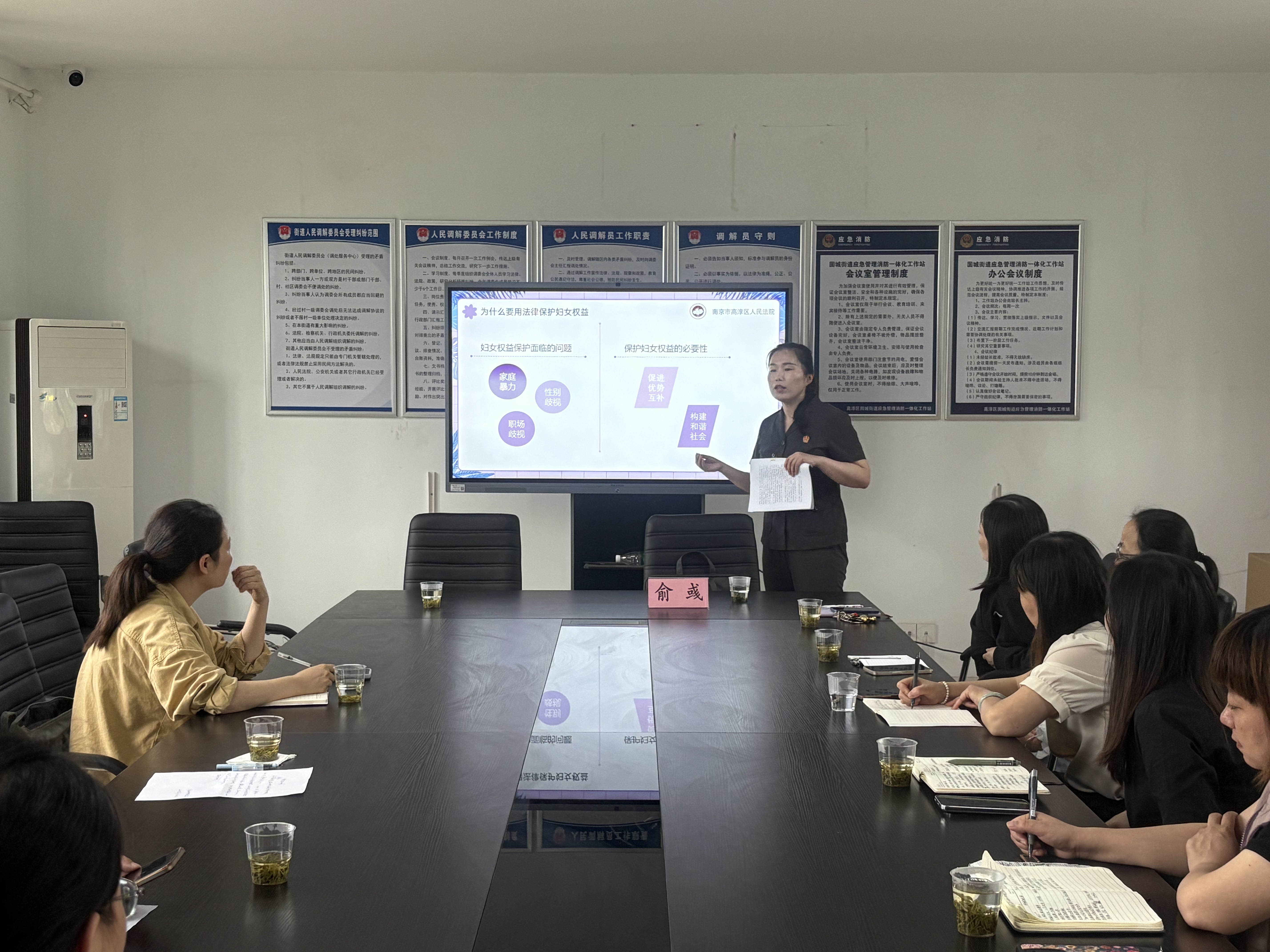 5月是民法典宣传月,为发挥基层调委会在化解婚姻家庭矛盾纠纷的作用,加强对妇女儿童的权益保护,提高街村调解员的法律知识和调解技能,日前,高淳固城司法所与街道妇联联合举办专题业务培训会,街道调委会工作人员、各村妇女主任及专职家事调解员参加。