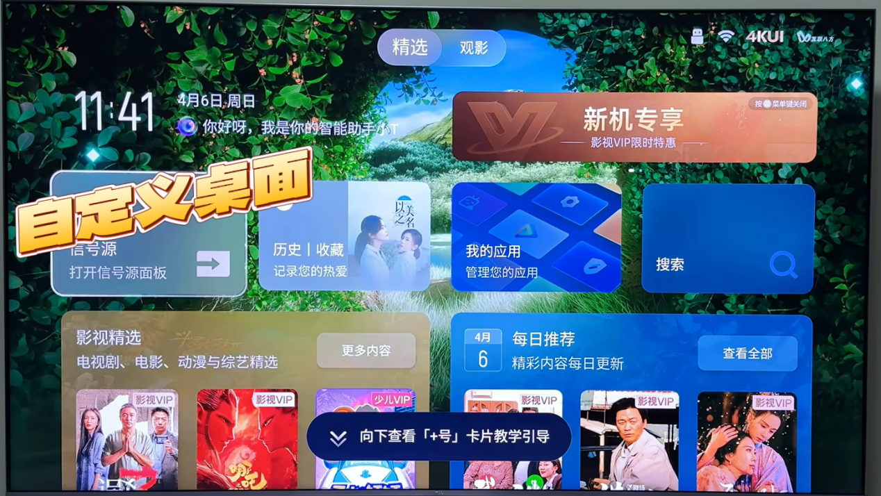 更绝的是分身系统,比如爸妈的桌面只保留央视影音和戏曲频道,孩子的页面锁定少儿内容,彻底杜绝误操作。4K UI界面流畅度更高,4K 壁纸也让整个电视的时尚感拉升了不止一点。