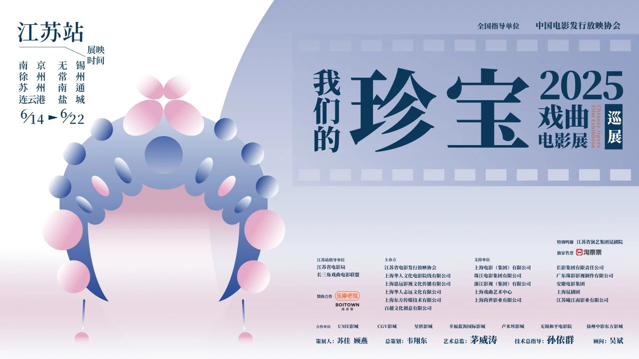 交汇点讯 记者今日获悉,“我们的珍宝”戏曲电影展江苏站展映版图再度扩容,继南京、无锡、常州、苏州、南通、盐城六城之后,徐州与连云港两座历史名城正式加入。6月14日至22日,江苏八城的24家影院将联手献映14部横跨1958年至2024年的戏曲佳作超200场,为全省观众开启一段缤纷多彩的戏曲光影之旅。