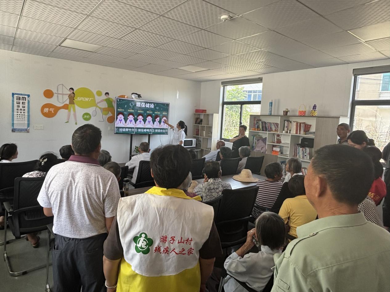 为响应第30个全国爱眼日,6月5日,东坝街道游子山村新时代文明实践站联合残疾人之家、村卫生室开展“关爱眼睛 点亮光明”公益活动,邀请村医现场指导残疾朋友学习标准眼保健操,以实际行动传递眼健康关怀,点亮乡村护眼“微光芒”。