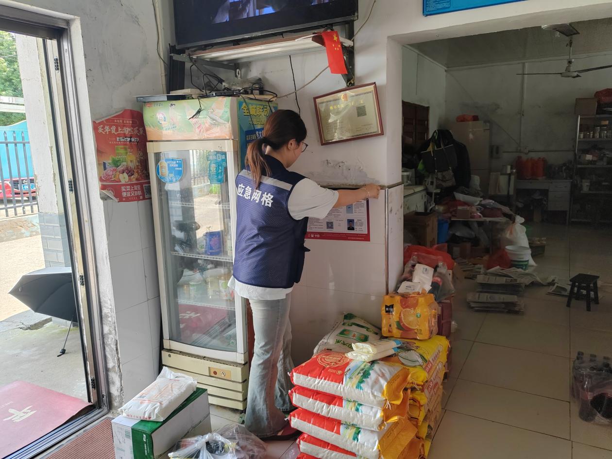 巡查过程中,身着“应急网格”背心的工作人员深入村内小商铺、小超市等“九小场所”,对场所内消防设施配备、用电用火安全、疏散通道畅通情况等进行细致检查。重点查看灭火器是否完好有效、电气线路是否规范、货物堆放是否存在消防安全隐患等问题。同时,工作人员为各场所张贴消防安全标识牌,清晰标注“五会六必须”等关键内容,以直观方式向场所经营者和消费者普及消防安全知识,强化安全意识。