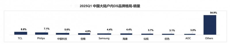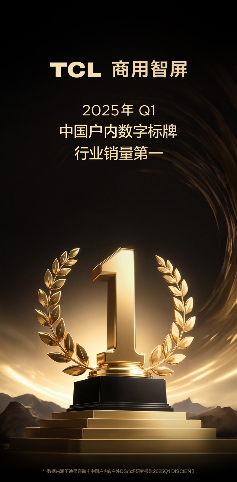 近日,根据权威机构迪显咨询发布的《2025年Q1全球户内&户外DS市场研究报告》显示,TCL以8.8%的市场占有率,位列中国户内DS市场销量第一,在品牌林立、竞争激烈的数字标牌赛道中脱颖而出,占据领先地位。
